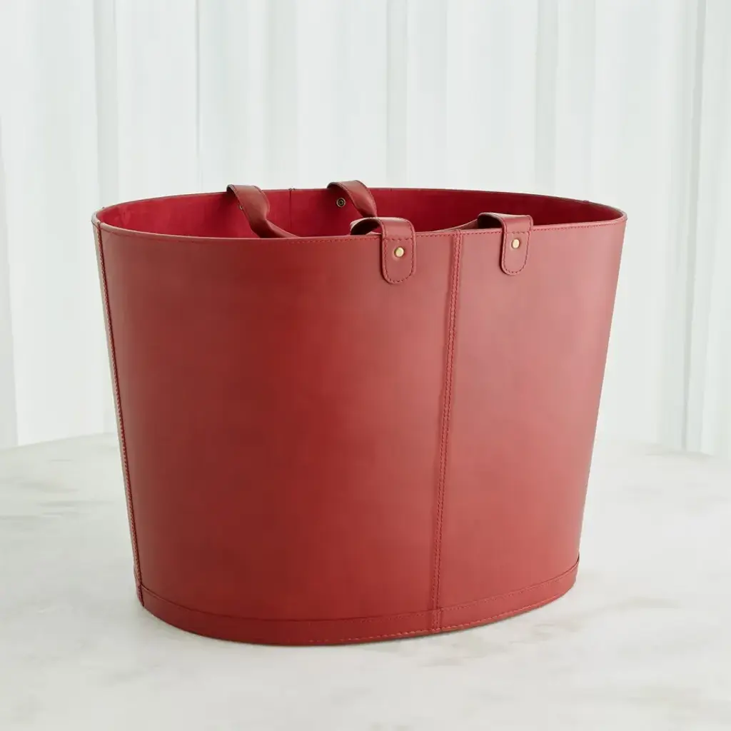 The Oversized Oval Leather Bucket is made of top grain marble leather lined in polysuede and perfect for all of your storage needs. From a fashion forward perspective, Global Views offers accessories, furniture, statement lighting, and an assortment of rugs and mirrors to add beauty and joy to your home.