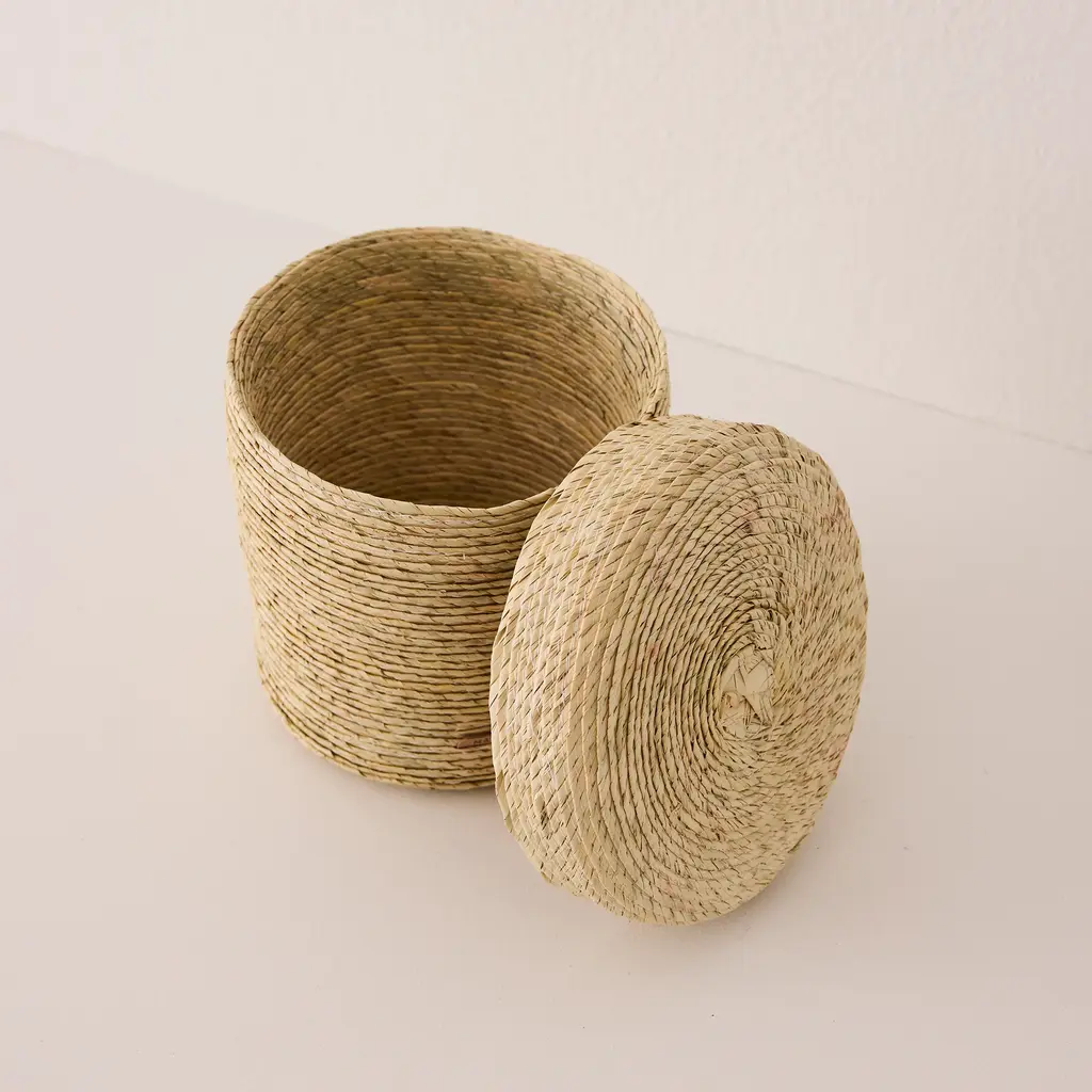 A refined (and ethically made) take on the classic storage basket, the Papelero Basket blends functionality with artisan-made beauty. Compact in size, it’s perfect for storing small essentials while adding an organic touch to any space. Its handwoven palm fiber construction lends an organic presence and textural warmth that elevate any space. Featuring a fitted lid for discreet storage, this versatile piece is woven by artisan families in one of Mexico’s most vulnerable regions, each Makaua basket preserves a generations-old craft while creating meaningful impact within the community.