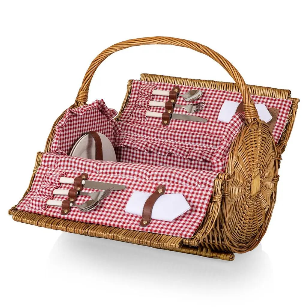 Featuring all the essential accessories and convenient storage for them within, this basket even features a cooler compartment to truly be the ultimate picnic basket.