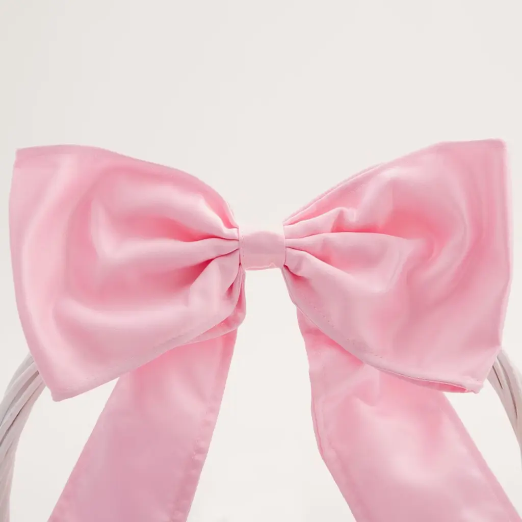 Elegant Easter Basket with Personalized Pink BowMake Easter extra special with this beautifully crafted white wicker basket, adorned with a luxurious pink satin bow. The oversized bow adds a charming touch, and it can even be personalized for a unique and thoughtful gift.Perfect for Easter egg hunts, gift-giving, or as a stunning holiday centerpiece, this basket is both stylish and practical. Its sturdy design ensures it can be used year after year, making it a treasured keepsake for children and adults alike.Celebrate Easter in style with this elegant and personalized Easter basket!