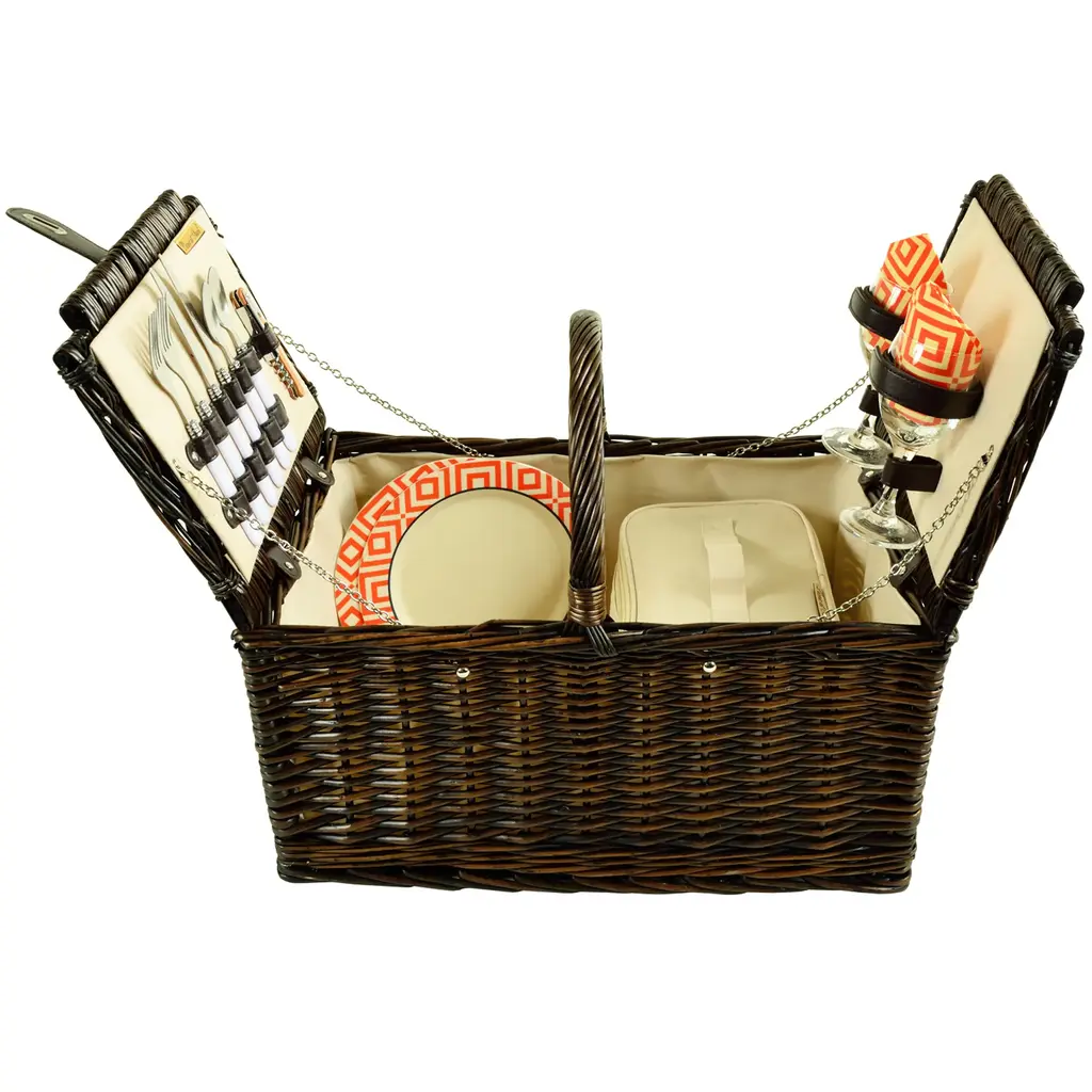 Picnic At Ascot - Willow Picnic Basket For Two - Diamond Orange