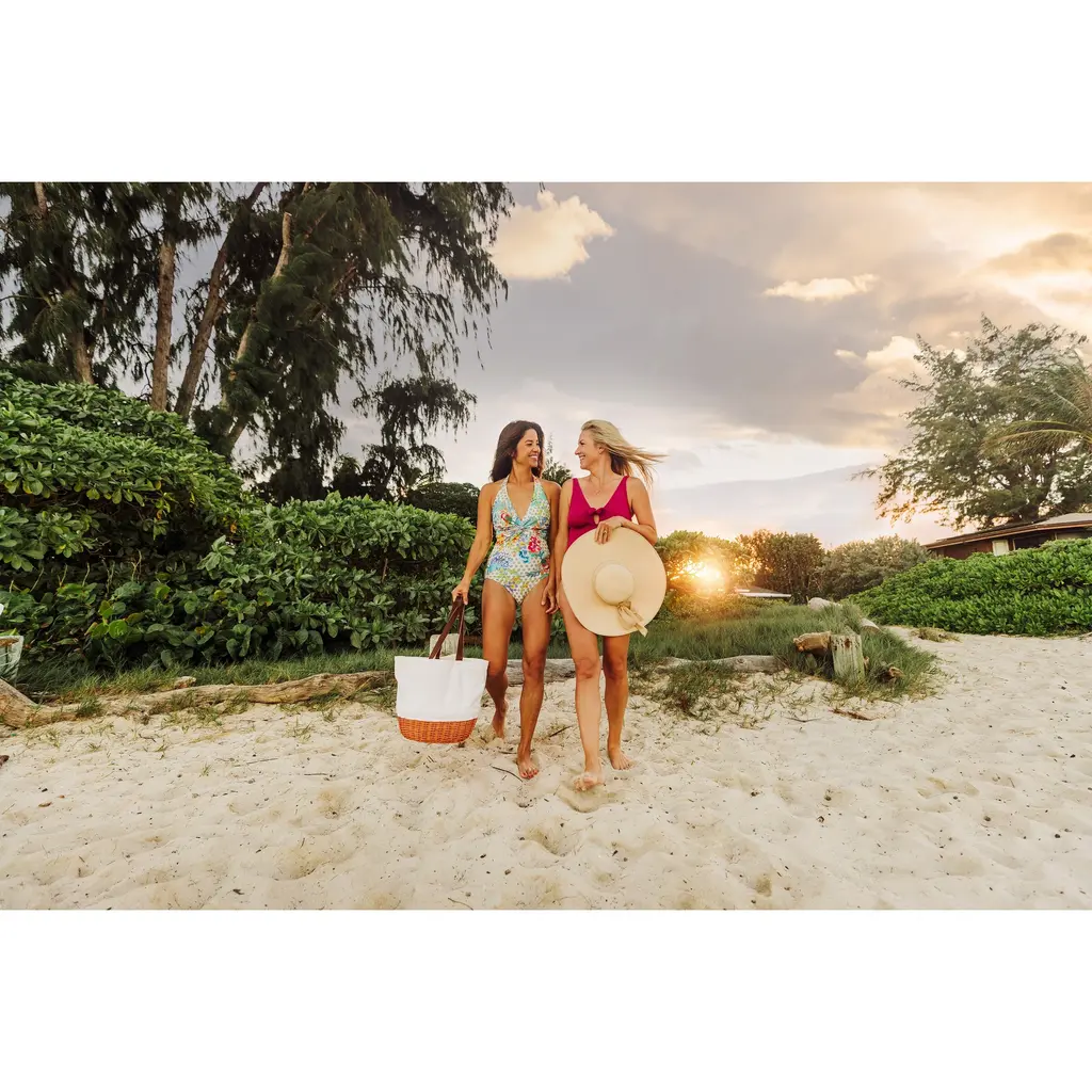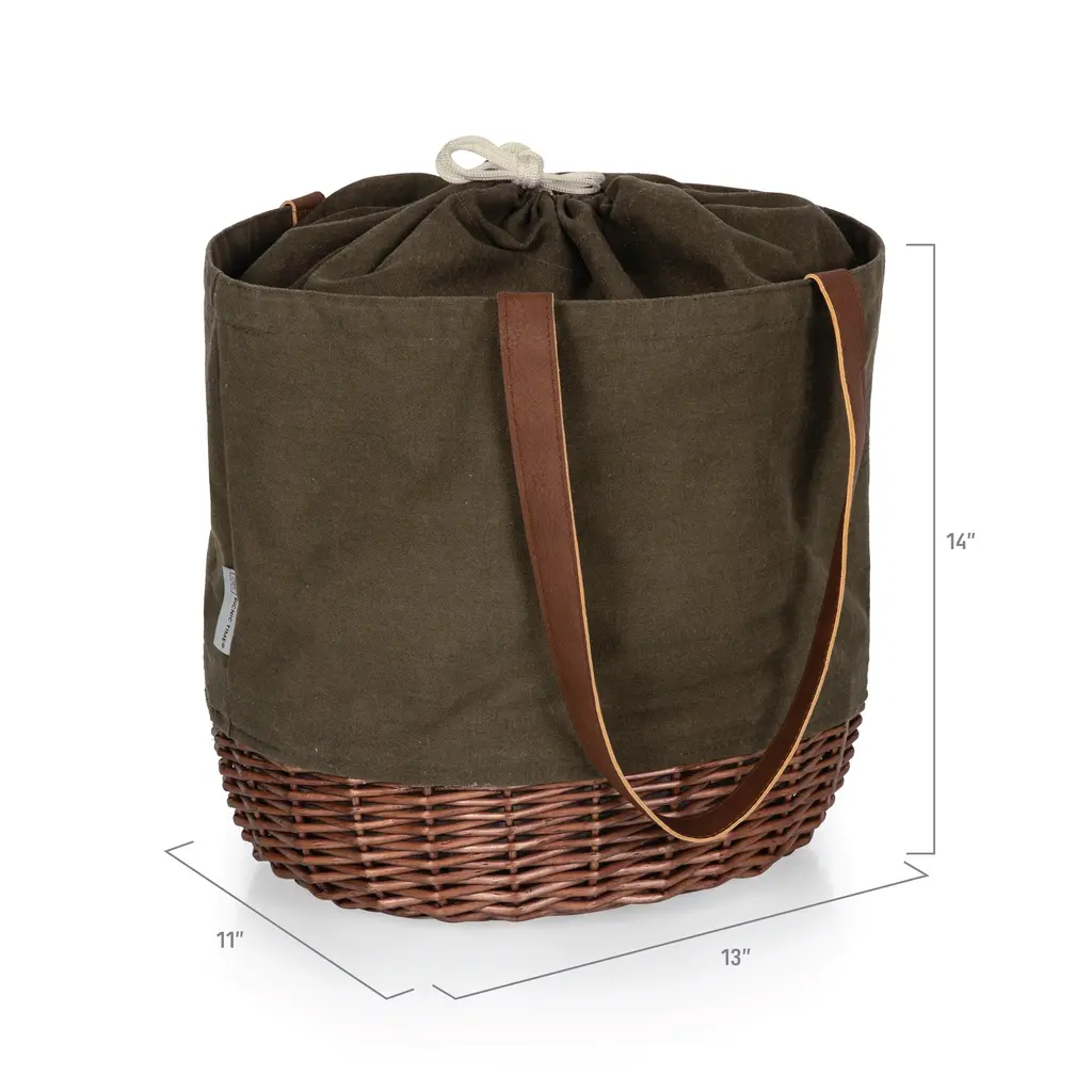 Picnic Time Coronado Canvas Willow Basket Tote, (Beige Canvas) - 14.17 X 11.42 X 13.4 - Beige