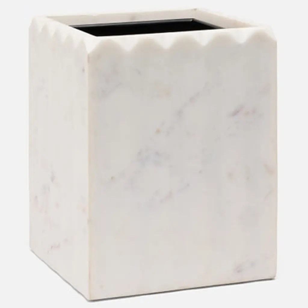 Pigeon And Poodle Proviso Modern Classic White Fluted Marble Square Waste Basket