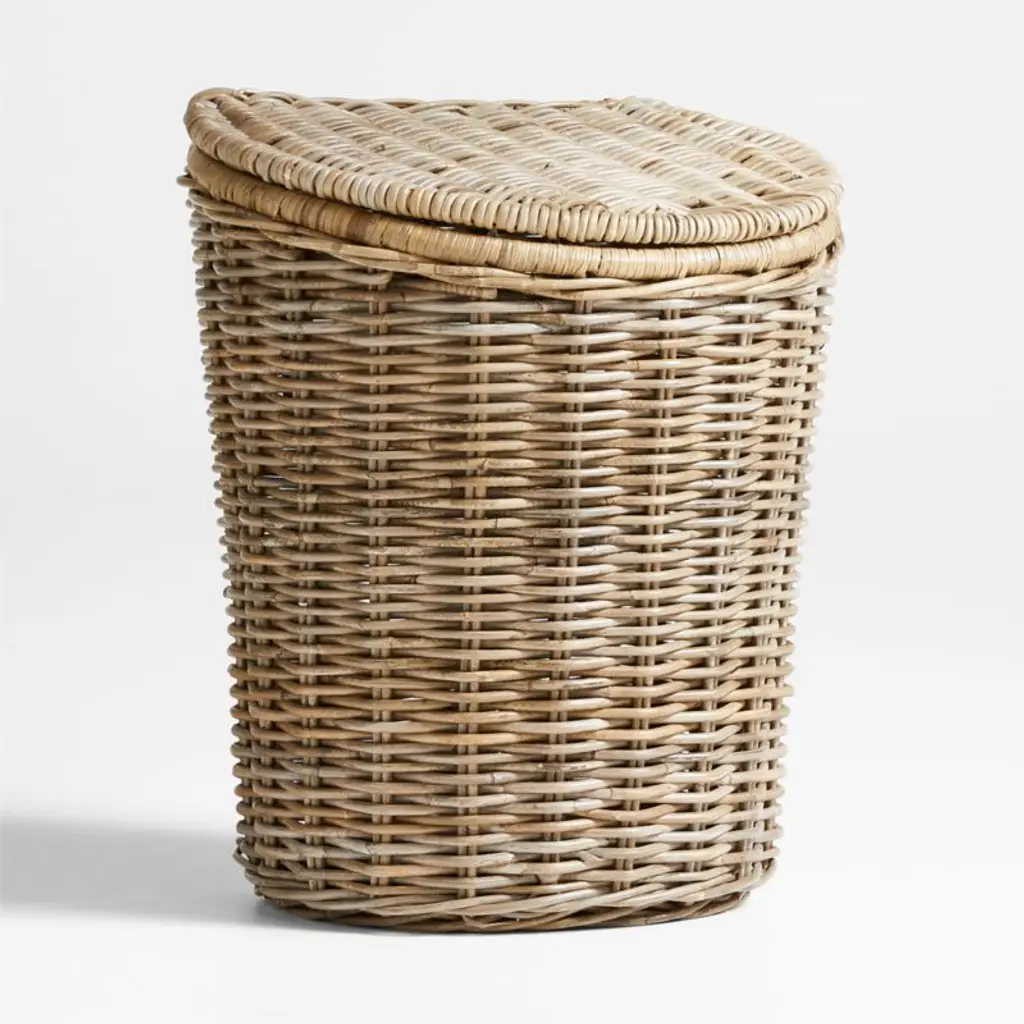 Chunky braids of rustic, washed rattan wicker are intricately woven around an iron frame in our Poplar Hamper by Leanne Ford, ready to corral laundry or extra linens. A sturdy handle on the back makes it easy to tote to the laundry room, while its vertical profile means it can tuck into closets or corners.Our newest collection with star designer Leanne Ford is everything she wishes she had when designing her own daughter's nursery: timeless, vintage-inspired pieces for an effortlessly cozy space.