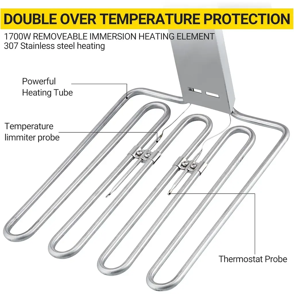 Temperature Control: This electric deep fryer with basket and lid features temperature controls and thermostatic controls, temperature can be adjusted from 140℉ to 392℉ (60℃-200℃), you can set the optimal temperature depending on what you cook. An installed guard plate effectively balances oil temperature and ensures food is fried evenly. This double deep fryer will be automatically shut off when the temperature is over 260℃ (500℉) or reach the temperature you set.11L Large Deep Fryers: This electric deep fryer comes with 1 capacity 11L oil tank, 1 lids and 1 removable baskets that feature compact durable stainless steel mesh and cool touch handle prevents excess heat transfer.22L Large Deep Fryers: This electric deep fryer comes with 2 capacity 11L oil tank, 2 lids and 2 removable baskets that feature compact durable stainless steel mesh and cool touch handle prevents excess heat transfer. Additionally, the front hook is compatible with most fryers, making it easy to hang the basket up to cool and drain excess oil quickly.Ease Clean: This stainless steel deep fryer is durable and comes with two handles that let you easily lift a tank out of the fryer to empty the oil and clean the tank, with 4 height-adjustable feet, the basket is removable for easy clean-up, such as restaurants, supermarkets, fast food stands, snack bars, parties.Professional Deep Fryer: This oil fryer with basket for home use is made of commercial-grade stainless steel and comply to ETLus standard, the edges finishing are smooth. this stainless steel deep fryer is durable, Oil basin thickness 1.0mm, The most important thing is that our frying basket is thicked, Our deep fryer heating tube is made of 304 stainless steel, Suitable for buffalo wings, chicken, dumplings, egg rolls, shrimp rolls, mozzarella sticks, jalapeno poppers.