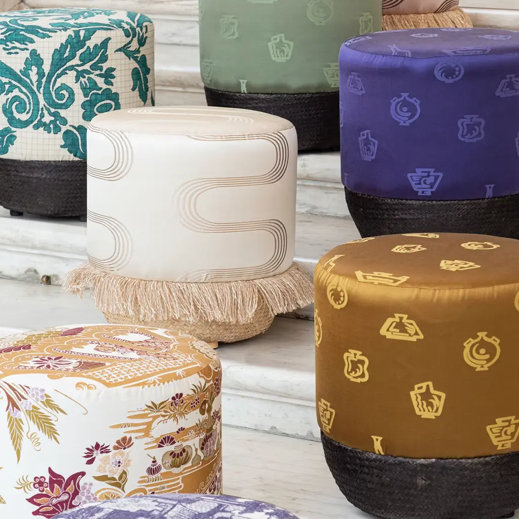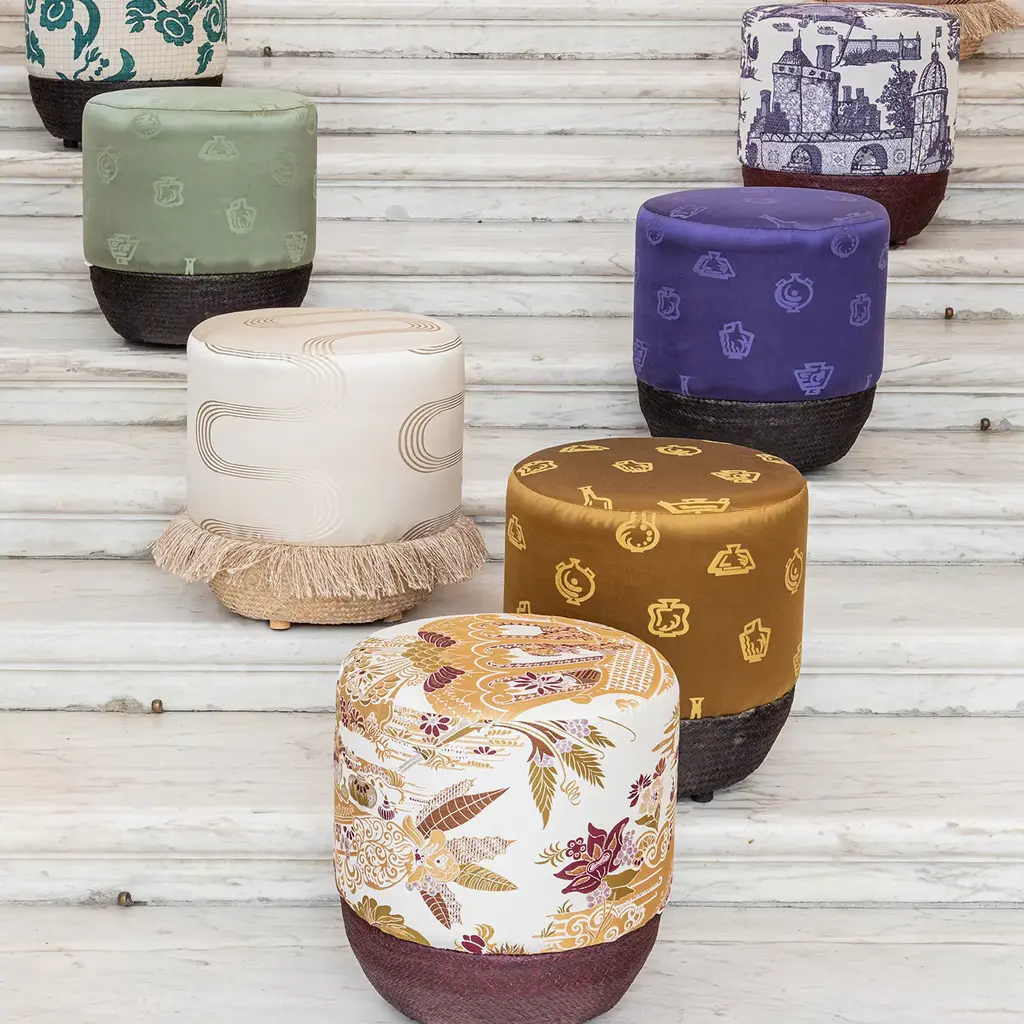 Pouf Vague Ivory With Rubelli Archive Fabric And Basket Base