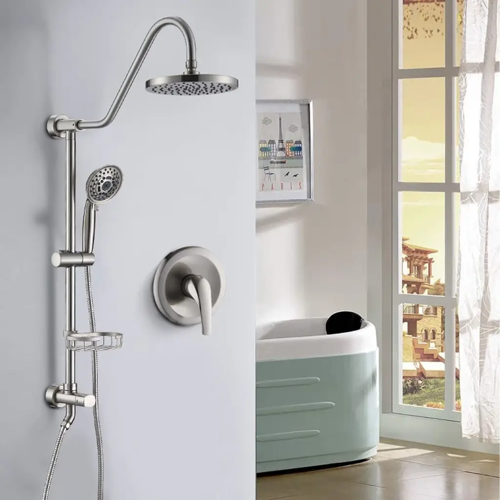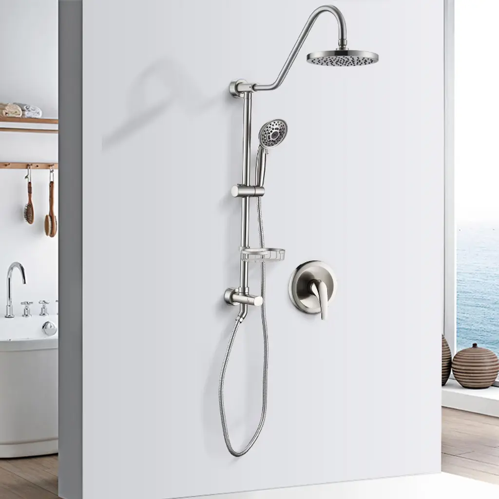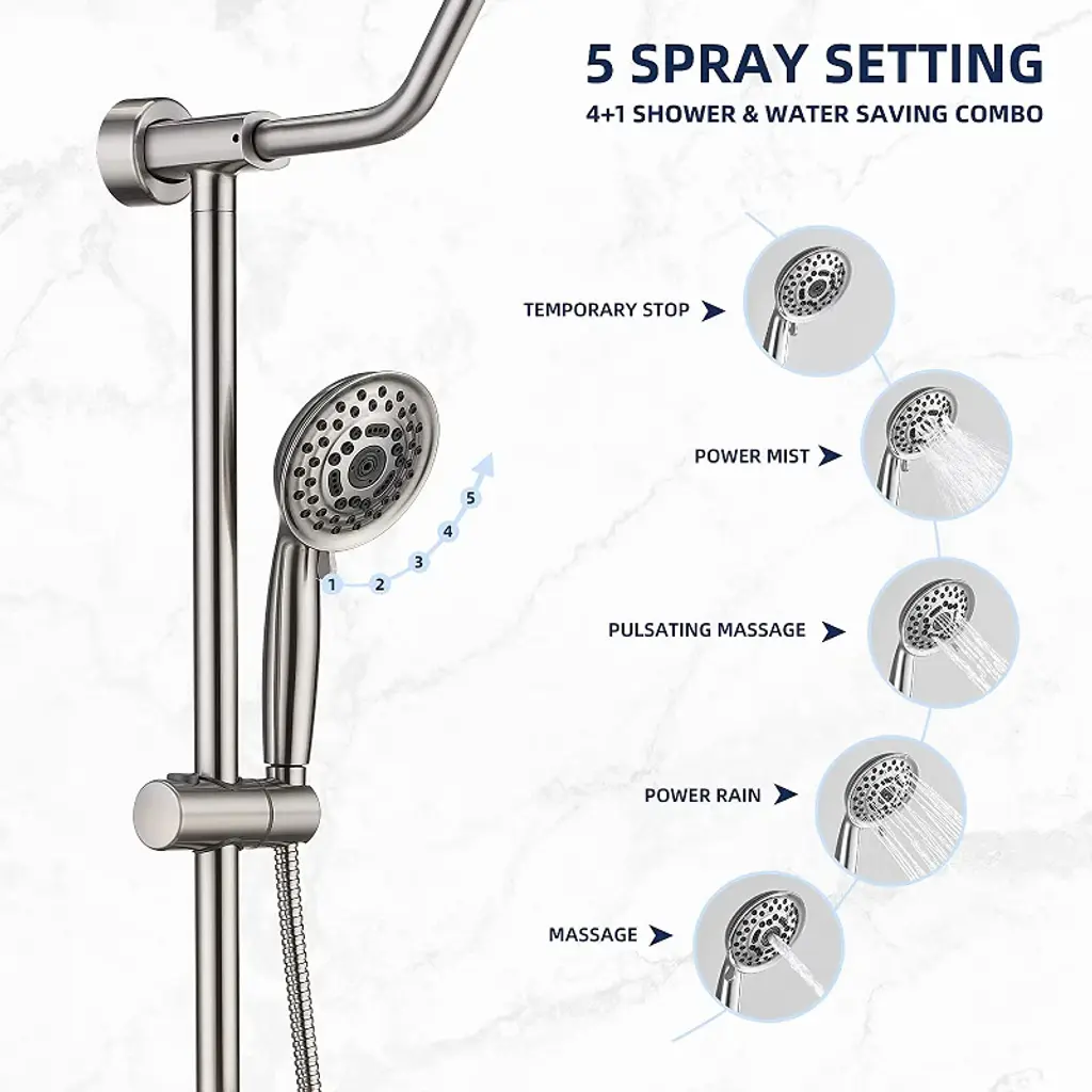 Proox 5-spray Round Wall Bar Shower Kit With Hand Shower With Adjustable Soap Basket In Brushed Nickel