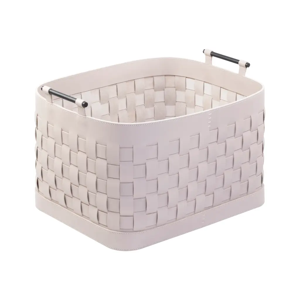 Inspired by the intricate mosaics of its namesake city, the Ravenna Basket is a masterpiece of artisanal weaving from Giobagnara and Rabitti 1969. Expertly handcrafted in Italy, this piece is created from strips of water-resistant saddle leather, meticulously braided into a sturdy yet flexible form. The rich, textural body is complemented by elegant brushed bronze handles, adding a touch of warmth. A fusion of heritage craft and timeless design, it brings tactile luxury and organized calm to any living space. Highlights: