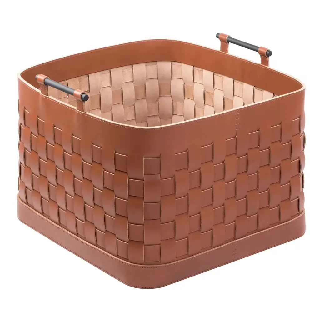A testament to masterful Italian leatherwork, the Rabitti 1969 Verona Basket is a masterpiece of functional art. Expertly handcrafted from strips of rich, durable saddle leather, its intricate woven structure is both sturdy and flexible. Integrated side handles add to its seamless design, making this a luxurious and portable solution for storing throws, magazines, or other home essentials in sophisticated style. Highlights: