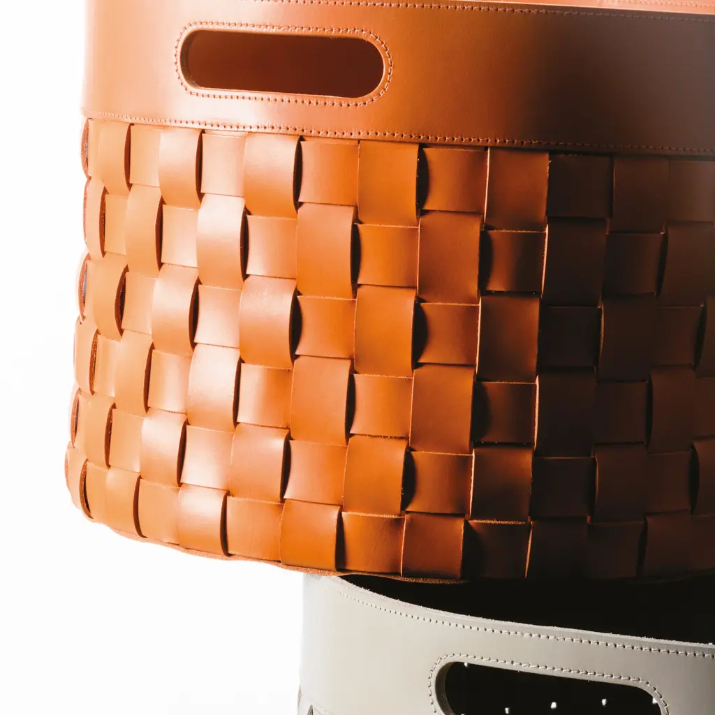 A testament to masterful Italian leatherwork, the Rabitti 1969 Verona Basket is a masterpiece of functional art. Expertly handcrafted from strips of rich, durable saddle leather, its intricate woven structure is both sturdy and flexible. Integrated side handles add to its seamless design, making this a luxurious and portable solution for storing throws, magazines, or other home essentials in sophisticated style. Highlights: