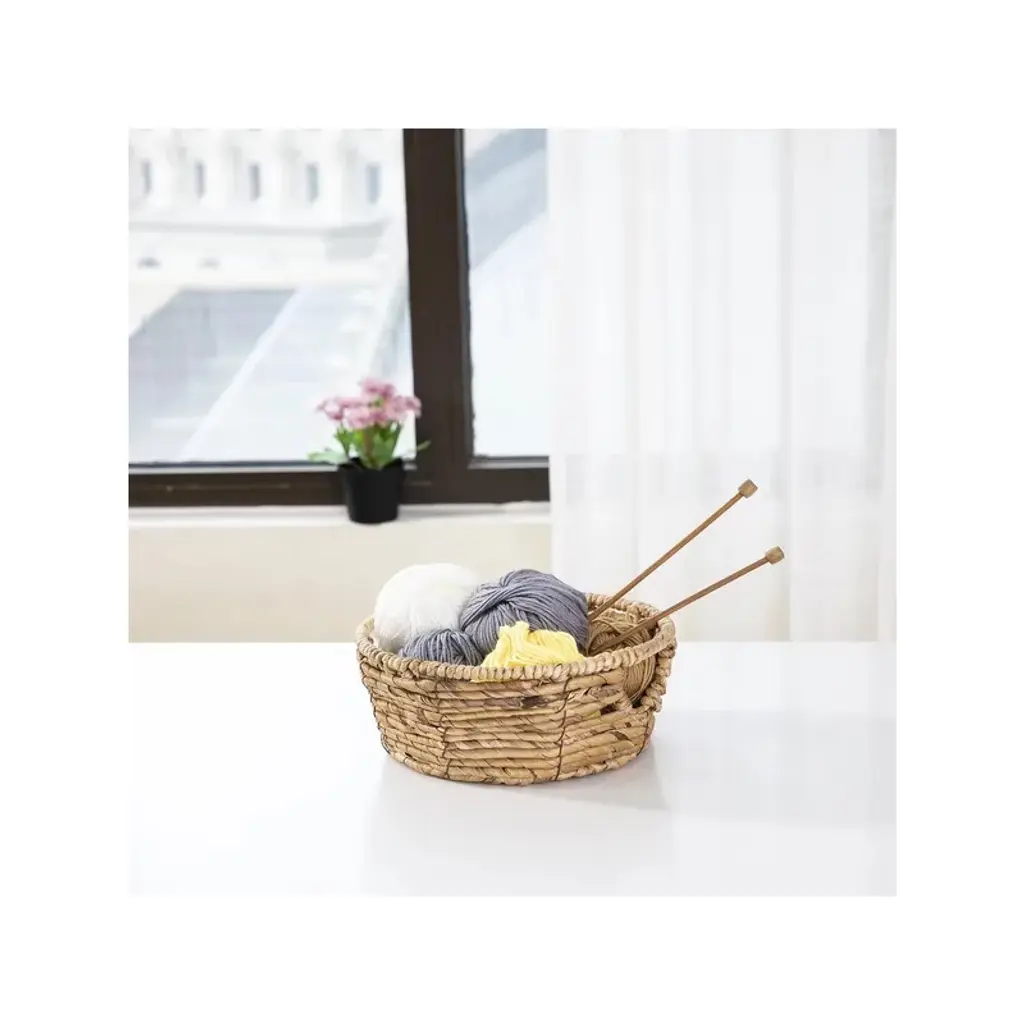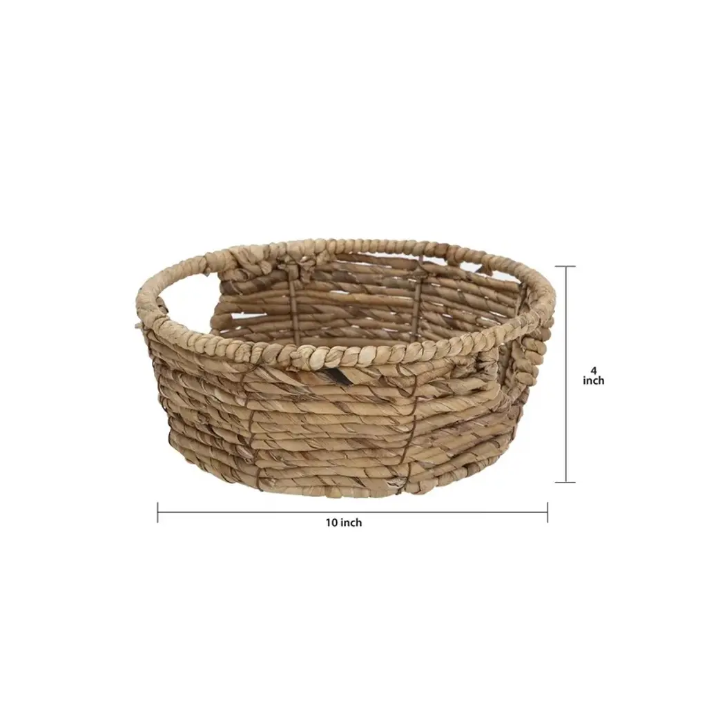 Racxily Round Water Hyacinth Woven Decorative Storage Basket, 10"d X 4"h