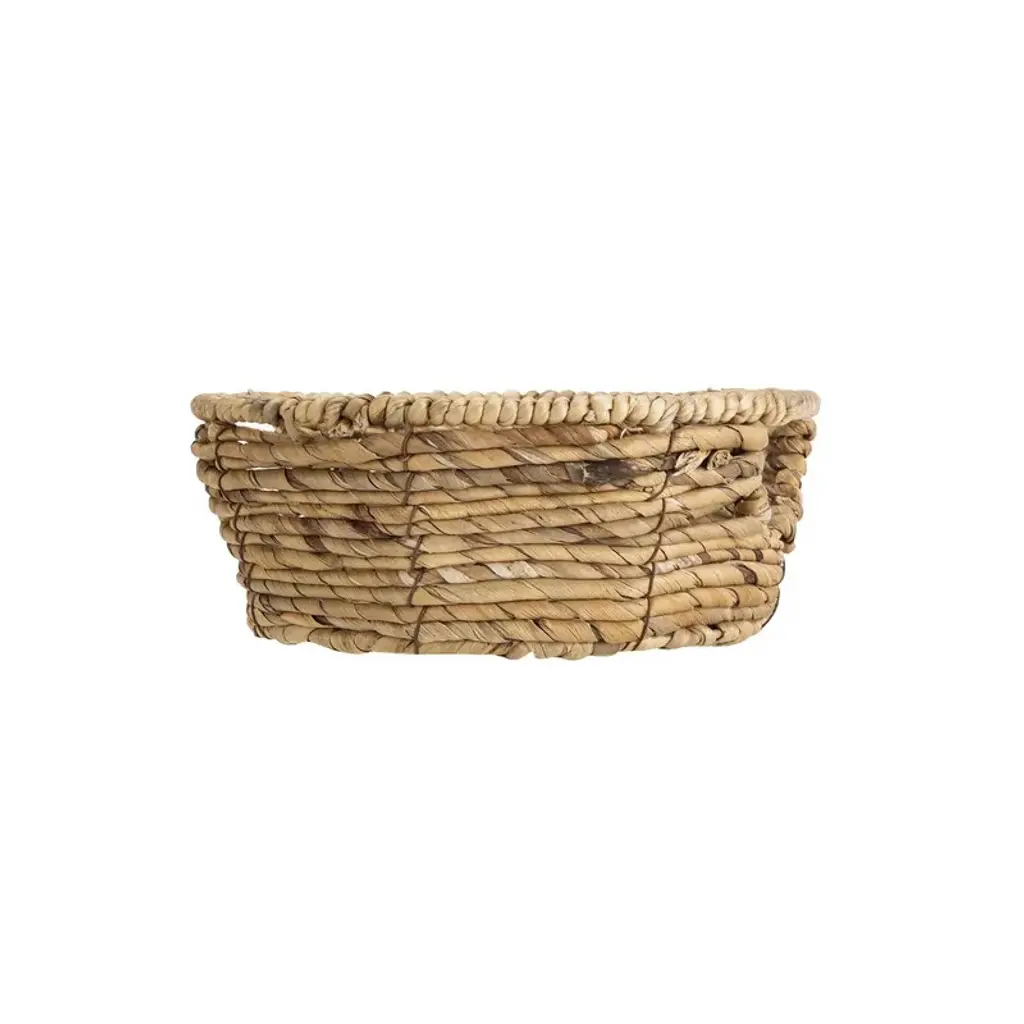 Round Water Hyacinth Woven Decorative Storage Basket is the perfect option for all of your every day needs. This gorgeous, handcrafted basket is made of water hyacinth woven in a plain weave design around a sturdy iron frame. This basket is light weight, and measures 10"D x 4"H. Use this versatile basket to declutter small items, to hold artificial plants, or get creative by using it to hold napkins at a party or your favorite wrapped candies. This basket was created with longevity in mind. The classic design will not go out of style. The quality will allow you to use this basket for years to come.