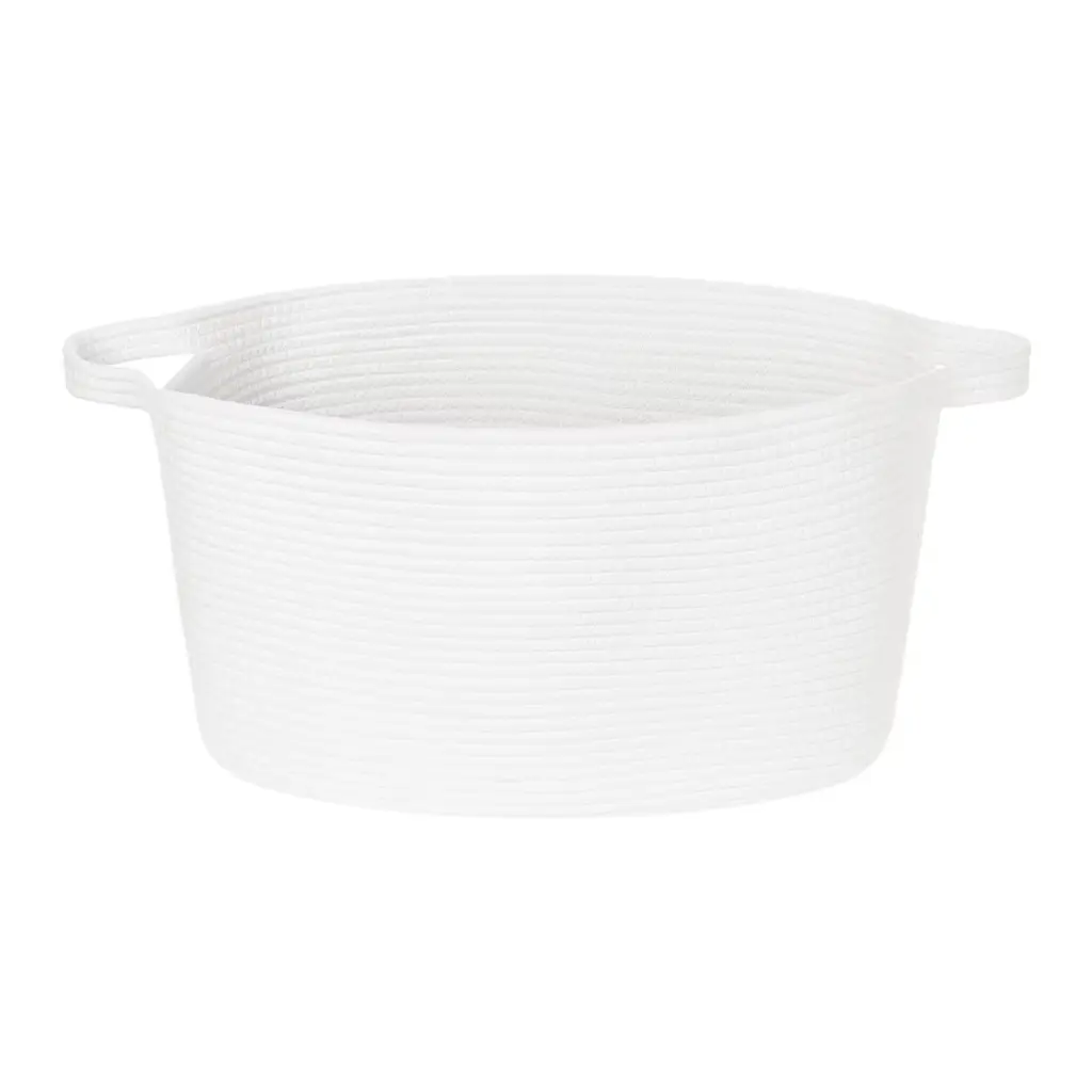 Declutter your space and keep it organized with this Rectangle Braided Sewing Basket from Threshold™. Made of paper, this open-top basket features a braided pattern with scalloped trim for an elegant charm. Plus, this cream sewing basket is designed in a rectangular shape and boasts double handles for easy portability from one room to another. Threshold™: Looks like home, feels like you.