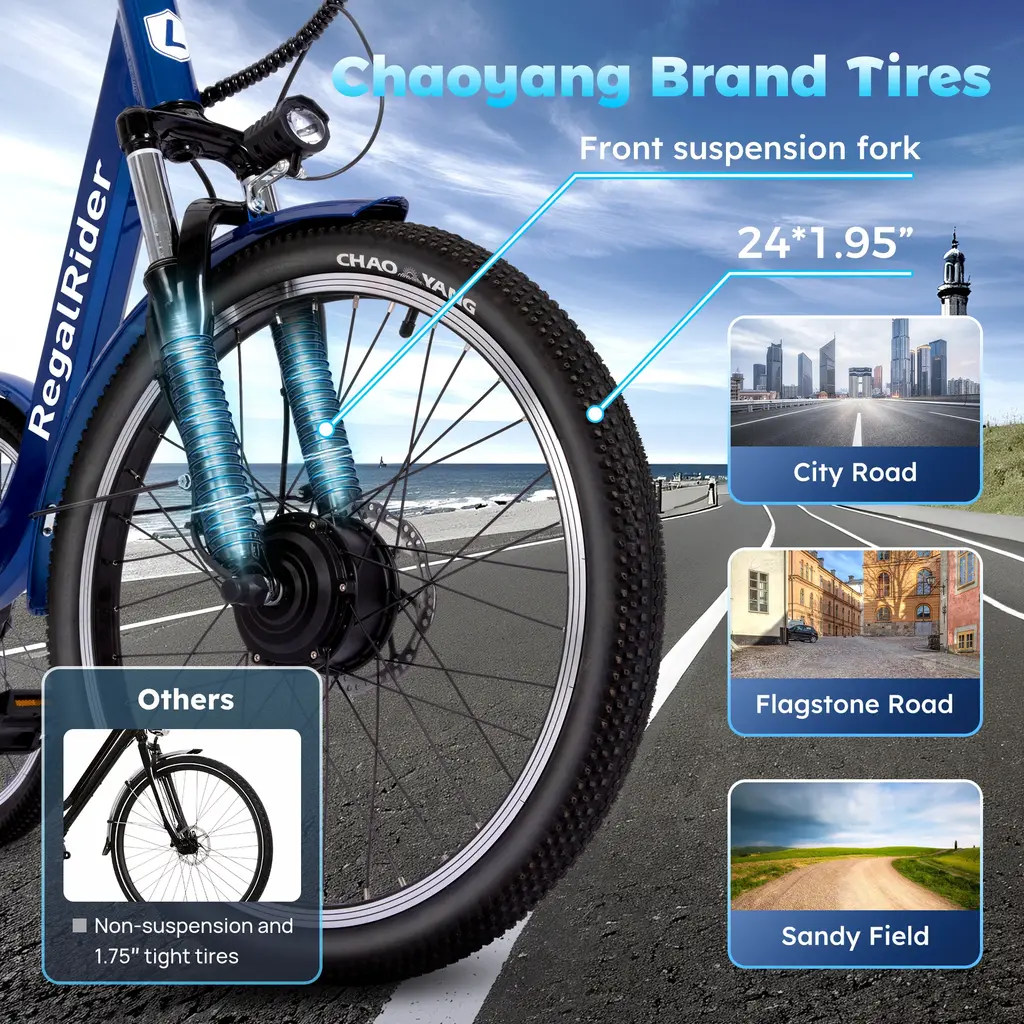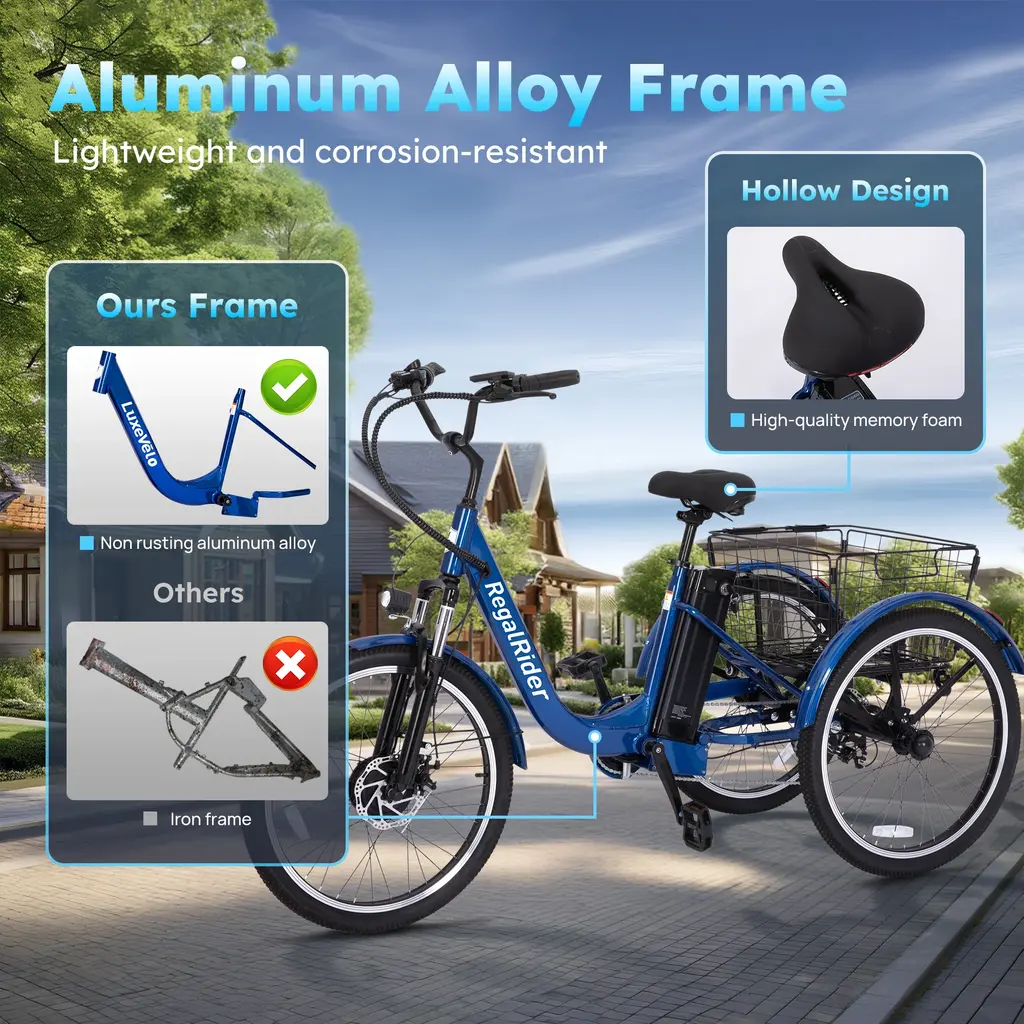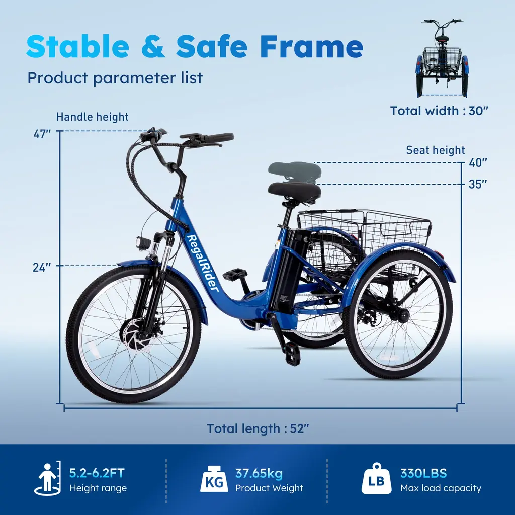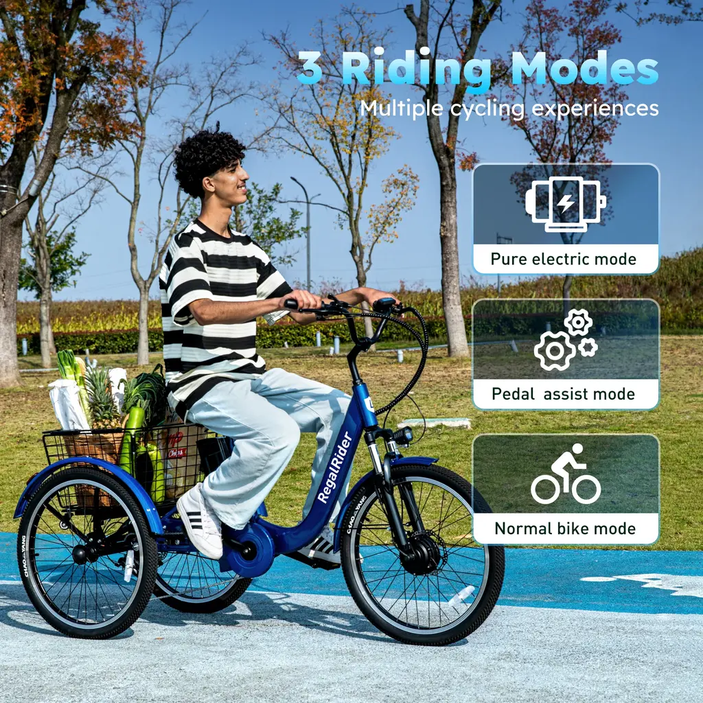 Regalrider 24" Electric Tricycle - 7-Speed 330lbs Cargo Trike With Removable Battery & Large Cargo Basket For Family Adventures, Senior Mobility & Pet Lovers