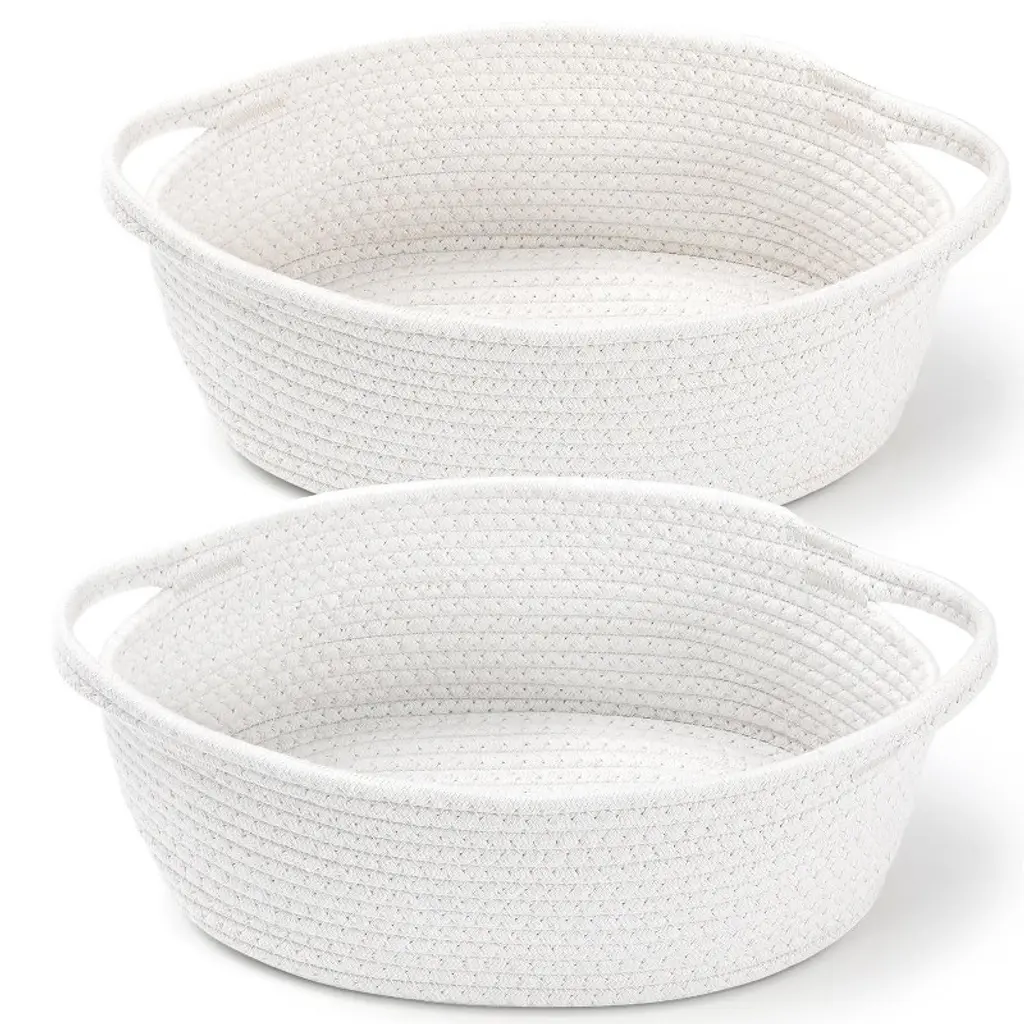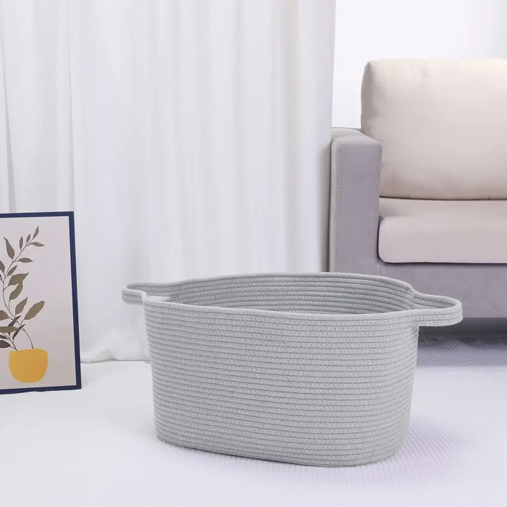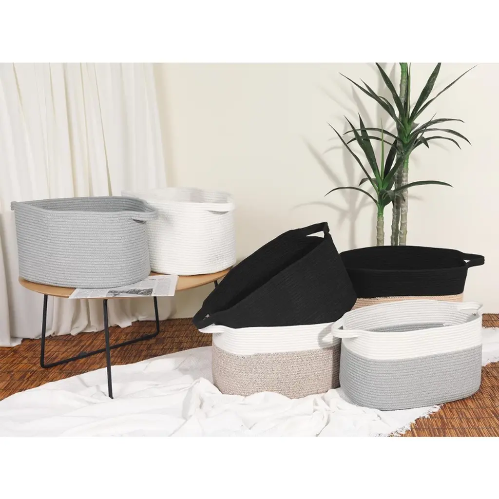 The basket is designed with jute string and portable handles, combining minimalistic and rustic styles for a simple and elegant look. The handles make it easy to move, providing a practical and adorable storage solution for daily use. These cotton rope baskets fit perfectly on shelves, closets, and under beds, making them ideal for organizing your home or office. The breathable cotton rope material protects your belongings from dust and dumping. Additionally, it serves as a versatile storage option for various items such as blankets, shoes, clothes, towels, decorative pillows, hats, scarves, magazines, and more. The basket's aesthetic design makes it a great addition to any room, fitting seamlessly into living rooms, bedrooms, and entryways. Its sturdy construction ensures durability, while the hidden, widened handles add to its functionality. This basket is not only practical but also a stylish accessory that enhances the decor of any space.