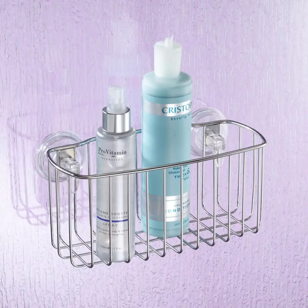 Reo Power Lock Suction Bathroom Shower Caddy Basket For Shampoo, Conditioner, Soap - Stainless Steel