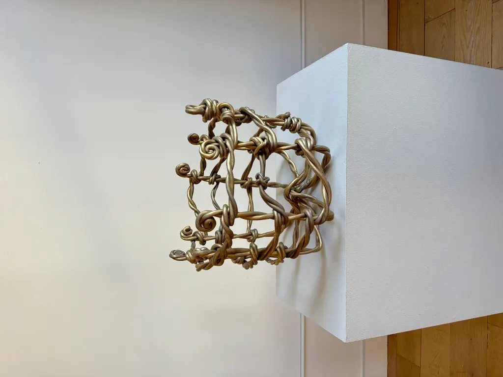 Resin Decorative Basket in Gold Epoxy Resin by Joseph AlgieriDimensions: D 33 x W 33 x H 33 cm.Materials: Epoxy resin.