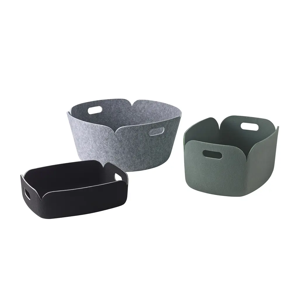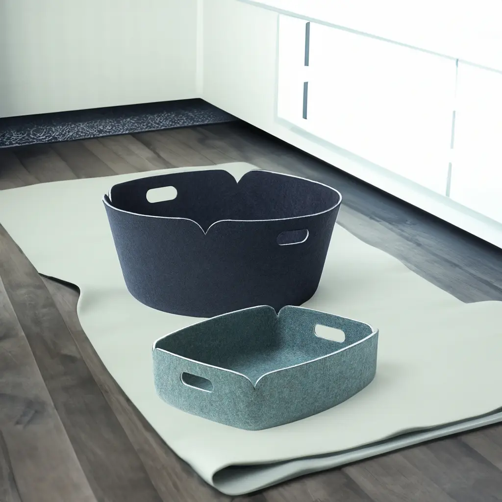 Muuto's capacious round basket augments the eco-friendly storage lineup from Finnish designer Mika Tolvanen. This collection of round and rectangular containers are molded from scratch-free felt, inventively fabricated from recycled PET plastics. Large enough to hold newspapers or firewood, stow toys or collect blankets. We even think they make a cool pet basket. And the clean lines and soft texture fit in any living spaces.