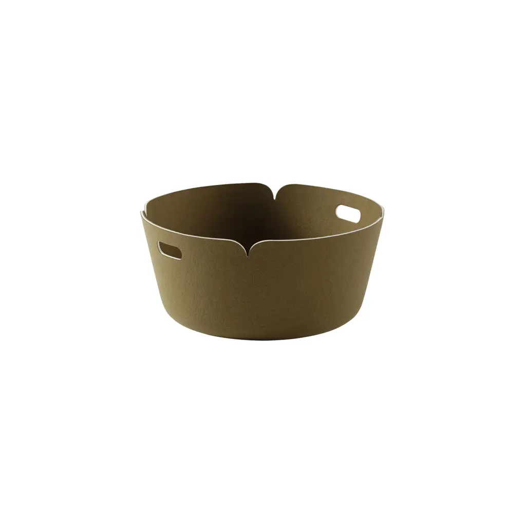 Muuto's capacious round basket augments the eco-friendly storage lineup from Finnish designer Mika Tolvanen. This collection of round and rectangular containers are molded from scratch-free felt, inventively fabricated from recycled PET plastics. Large enough to hold newspapers or firewood, stow toys or collect blankets. We even think they make a cool pet basket. And the clean lines and soft texture fit in any living spaces.
