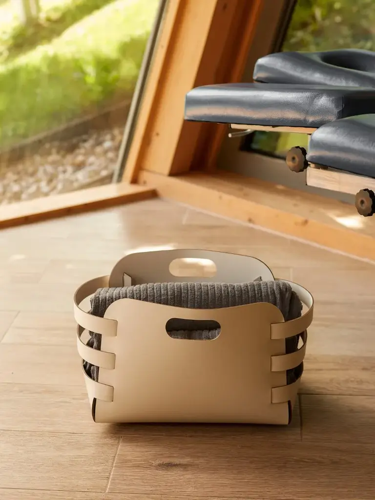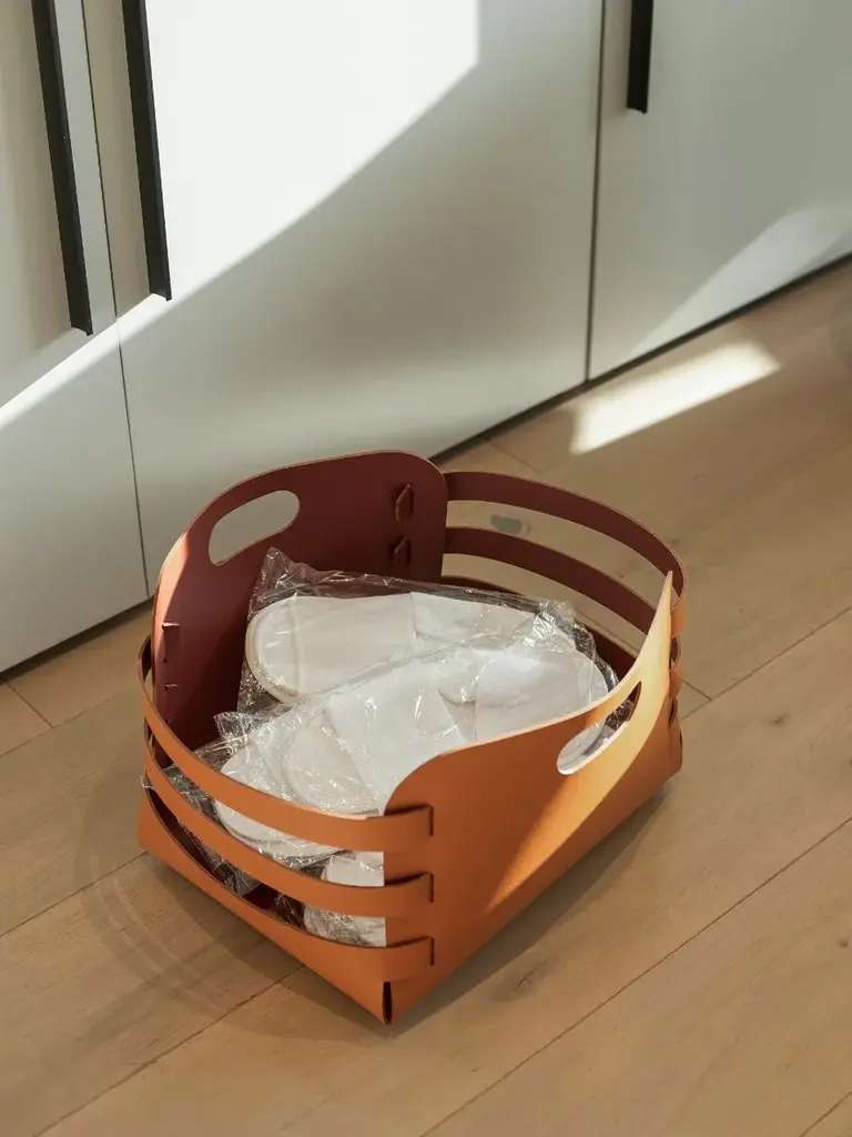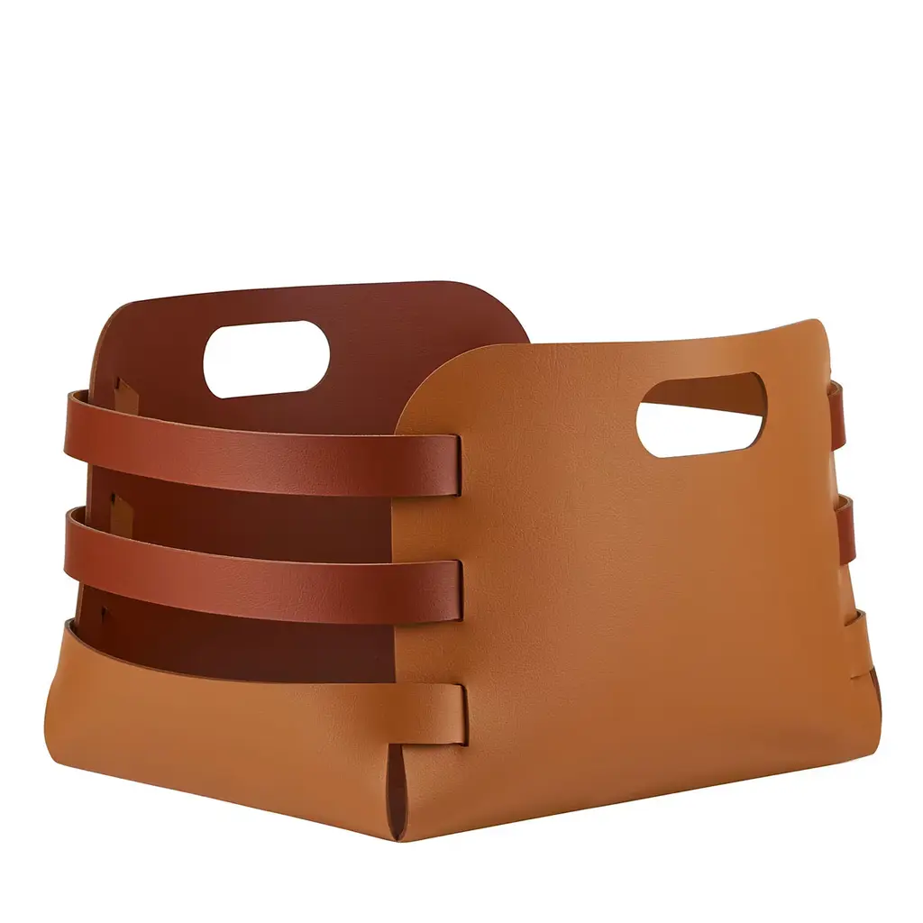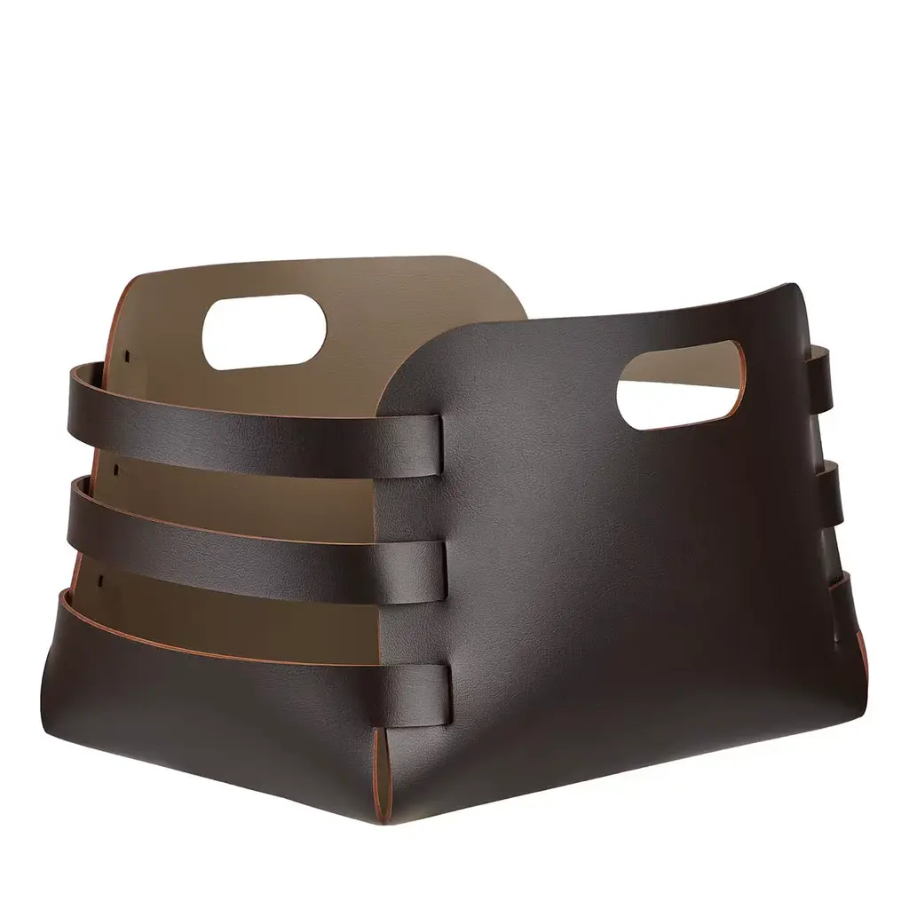 The basket is convenient for storing magazines, plaids and slippers. Each product utilizes ADJ's multifunctional leather, which undergoes double-sided dyeing and a specialized anti-vandal treatment, resulting in enhanced durability against wear, scratches, and abrasions.