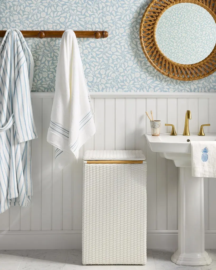 We took the iconic look of our very own Riviera Collection to give the laundry room a new spin. Using the same materials and weave, we kicked things up a notch with brass and leather detailing on the hinged lid. Comes with a removable cotton lining for easy care and toting. We can safely say that laundry never looked so good.