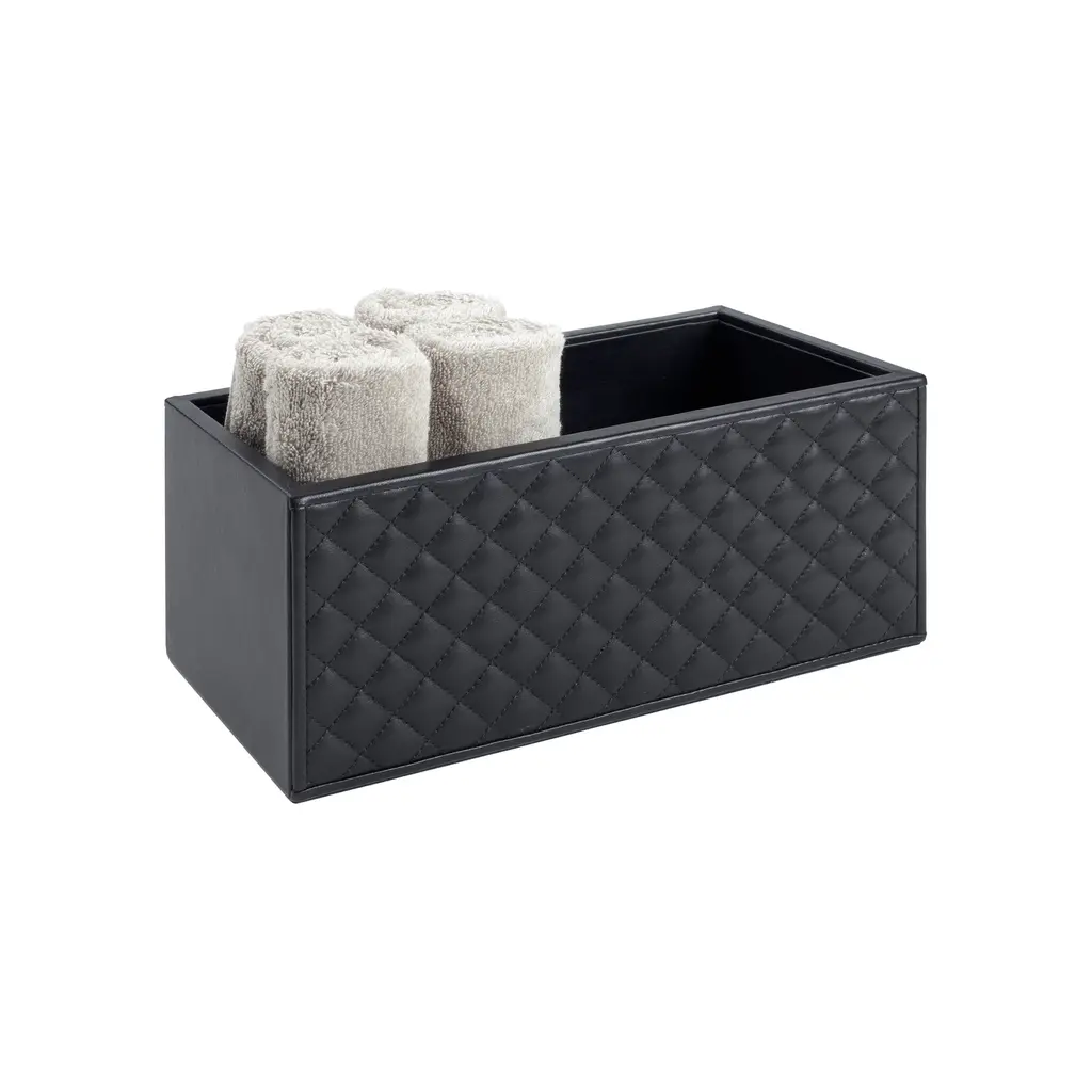 A touch of couture for home organization, the Diamonds Basket is a glamorous design from the Giobagnara and Riviere collaboration. Expertly handcrafted in Italy, this multi-purpose container is meticulously wrapped in soft, padded leather stitched into a timeless quilted diamond pattern. The wonderfully tactile and structured form is perfect for storing magazines or throws with an unmistakable touch of style. A fusion of high-fashion texture and everyday utility, it’s an exquisite accent for a glamorous, organized living space. Highlights: