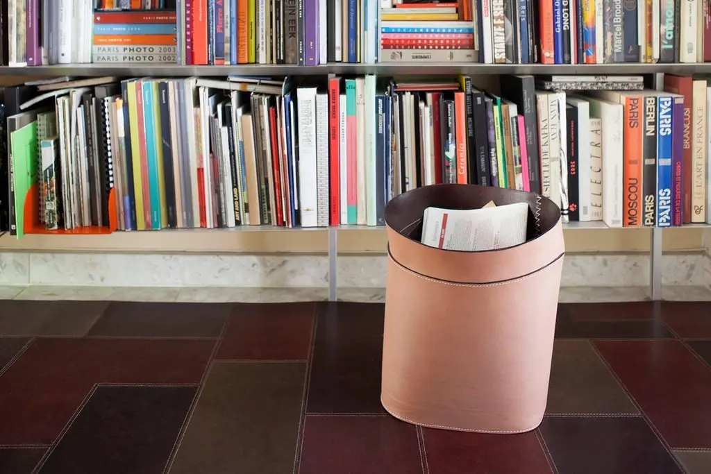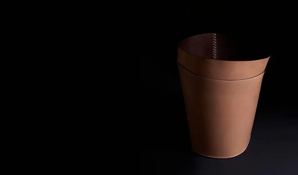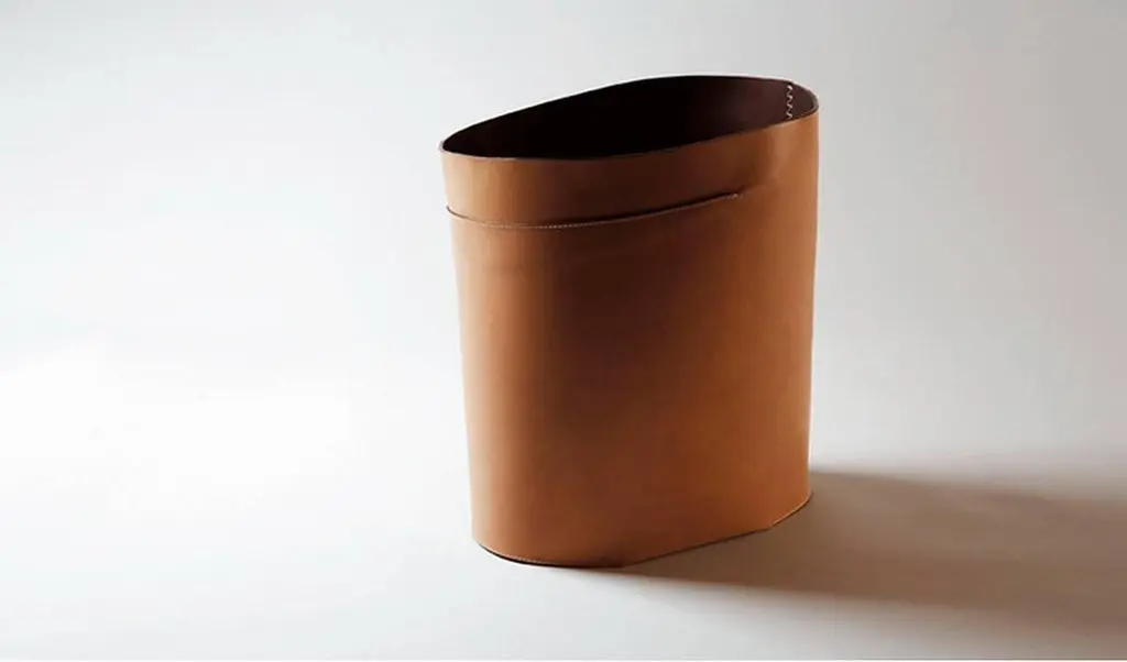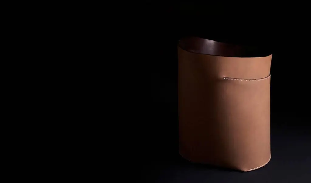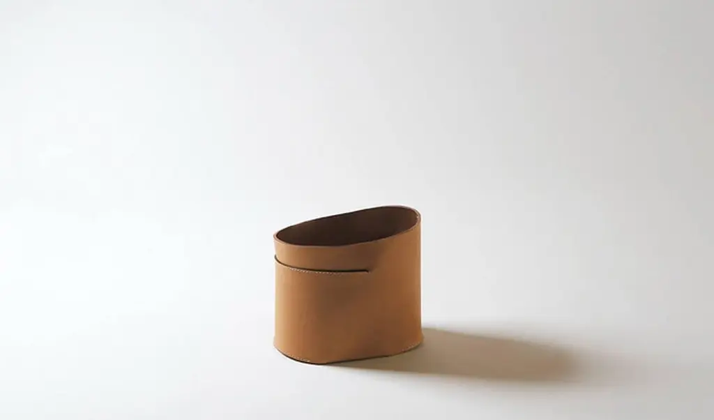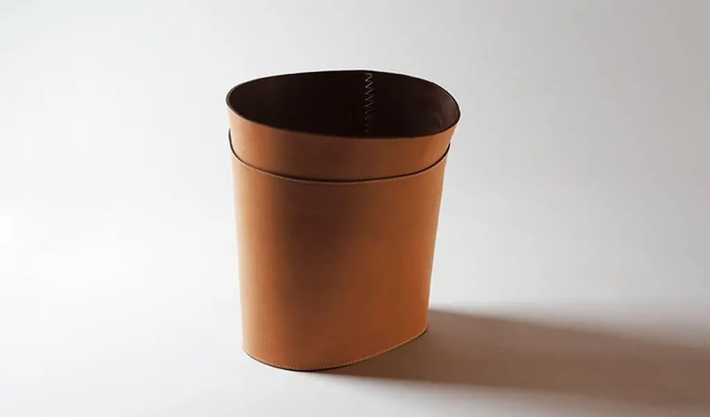 "Robin" is a leather basket, designed by Claude Bouchard and manufactured by Oscar Maschera, and is part of Foglia Couture collection. Genuine Italian leather vegetable tanned. Colors combination to be chosen from the available range: tan, sienna, orange, red, red-purple, dark brown, khaki, blue, black.DIMENSIONS:Ø 15.7", H. 18.8"Two hides together, one single layer of leather. Two different colors, one for the inside and the other for the outside. Few precise cuts on a whole surface, a few pleats held together by hand stitching: the object has taken shape. Strong thickness, raw edges, dyed edges, contrasting stitching: the details of craftsmanship. Leather, robust and soft, which maturates over time like wood, wine, brandy and cheese, is a material suitable for a living relationship with people and things it has to do with: it absorbs their scent and gives its own. It protects, gathers and changes shape, as it retains something of the life it once had.Past experiences in working with leather, with objects of common use transformed into their own form by the material of which they were made (baskets, boxes, trays, writing-desk items, small pieces of furniture, in addition to bags and cases, of course) have led Oscar Maschera to today’s production which has exceeded even the limits of explicit reality to get the pure form of the objects, reaching beyond the risky limit of mere functionality.CLAUDE BOUCHARD, interior architect and designer by training, is well known for his pieces of design in ceramics, porcelain, glass, metal and wood for firms such as Hermès, Puiforcat, Porcelaines Bernardaud, Faïenceries de Gien and the Musée des Arts décoratifs de Paris in France, Triangolo in Italy, Anthologie Quartett in Germany and Vista Alegre in Portugal.He has been artistic director of Puiforcat, the silversmith subsidiary of the Hermès group (2007 – 2009). Claude Bouchard’s work is focused on the physical, emotional and esthetic relationship between the object or space created and people who use or experience it. He has always questioned the simplicistic principle of “purity” and “functionalism”.During all his work Bouchard has been trying to bring a profoundly contemporary form of expression to traditional techniques and materials and thus to help the conservation and renewal of those endangered techniques. Claude Bouchard lectures both for the architecture Department of Columbia University and at the Camondo School of design and interior architecture.Claude Bouchard’s work has been shown at the Galleria Blanchaert in Milan, at the Biennale di Faenza, at Max Alto and the Square de Vergennes Gallery in Paris, at the Biennale de St. Etienne, and at the craft in several retrospective exhibits in France, Belgium and Japan and several of his works are now in museum collections (Musée des Arts décoratifs Paris, Musée des Arts décoratifs et des Textiles de Lyon, etc).