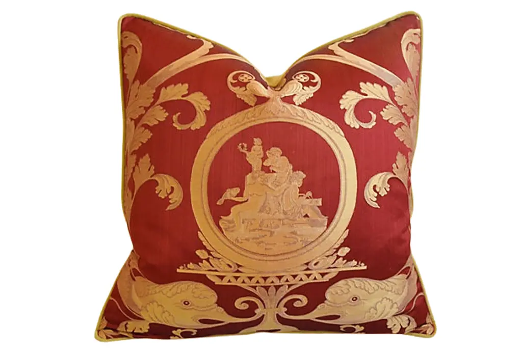 Roma Basket Base And Ancient Amphorae Design On Velvet Pouf