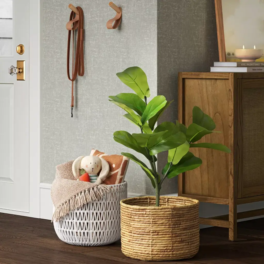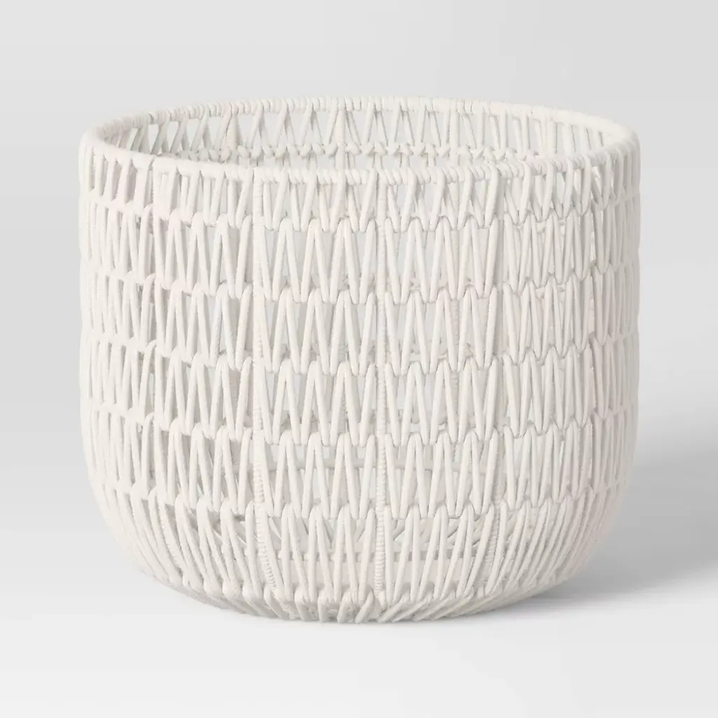 Keep your things neatly stored and organized with this Rope Basket from Threshold™. This round basket can be used for storage or as a decorative accent. It features a woven rope construction for textured interest and cool style, and the solid color makes it an easy pairing with other decor. Great for holding throw pillows, blankets and more, it can be spot-cleaned or wiped clean for easy upkeep.Threshold™: Quality & Design / Casual classics for house and home.
