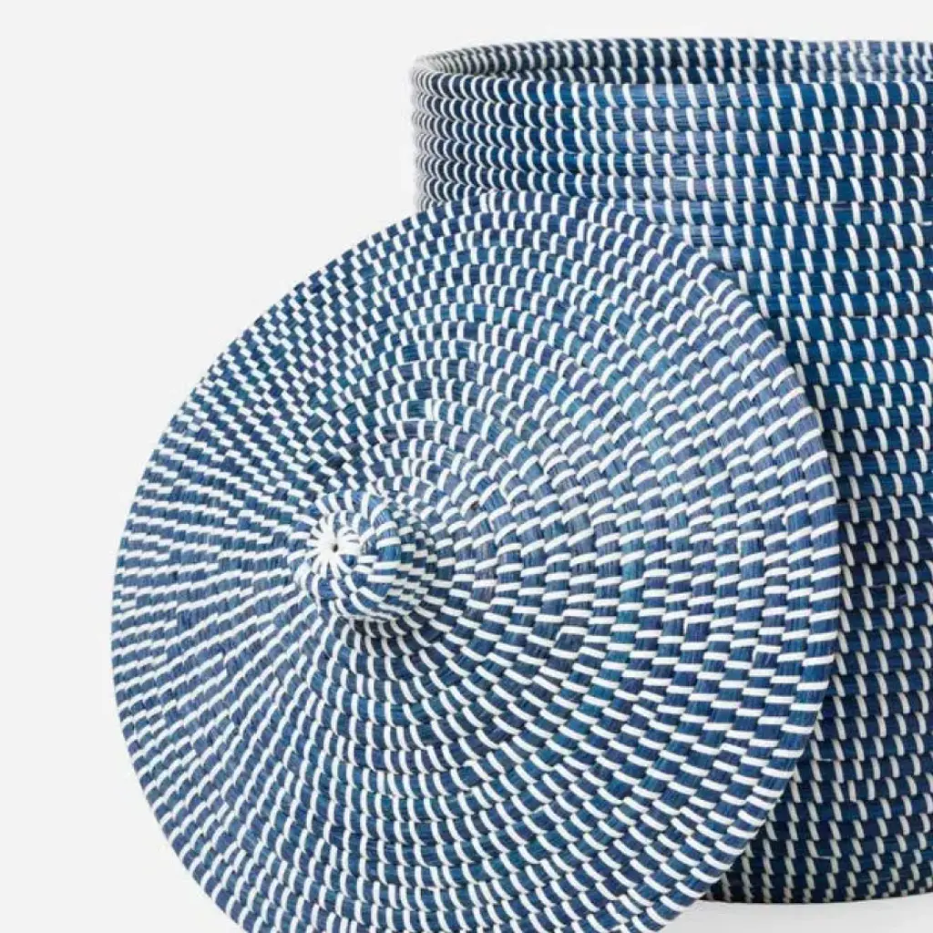 Roslyn Navy/white Basket Basket: 16"d X 23"h
