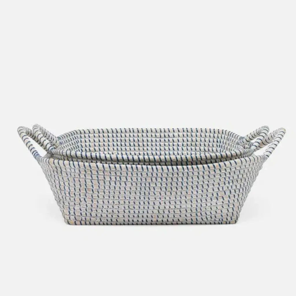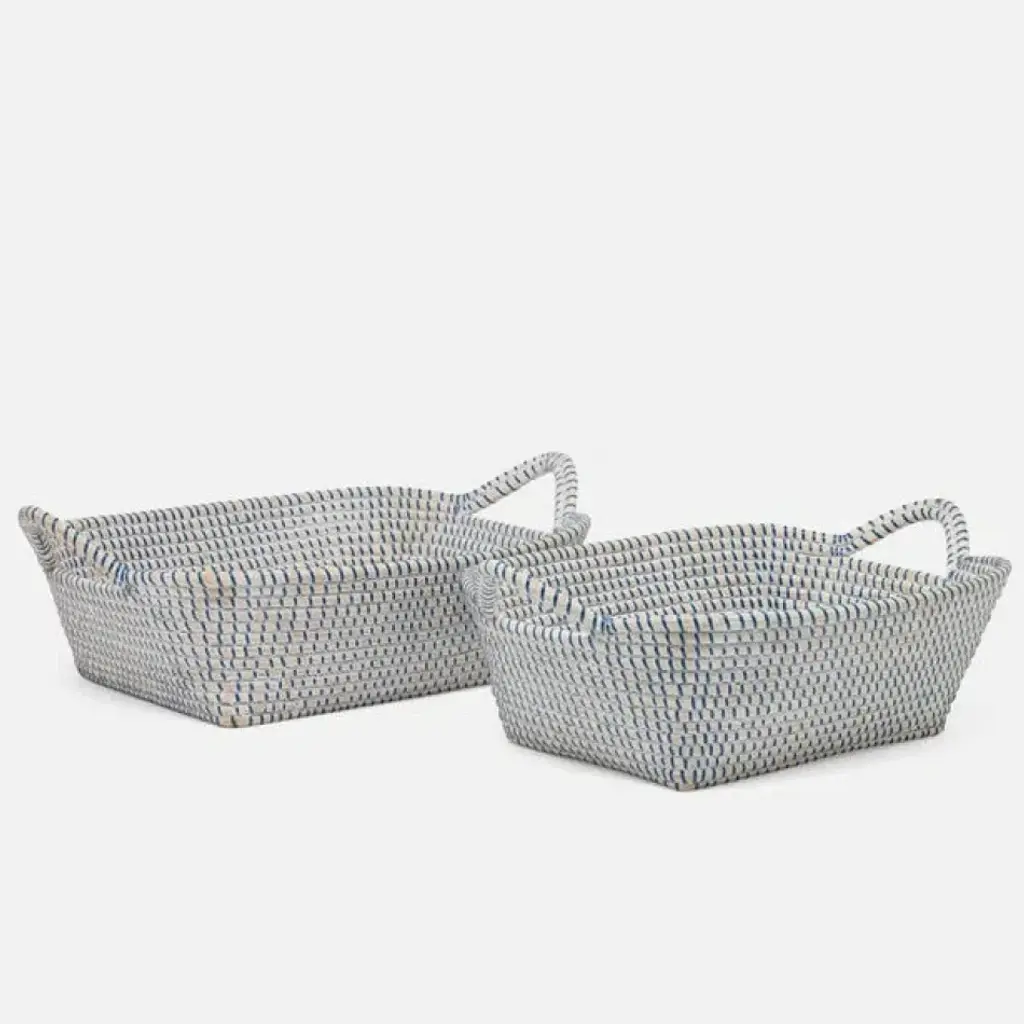 Roslyn Whitewashed/navy Basket Storage: 16"l X 12"w X 4.5"h, 18"l X 14"w X 4.5"h, Set Of 2