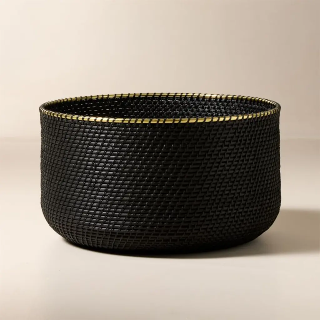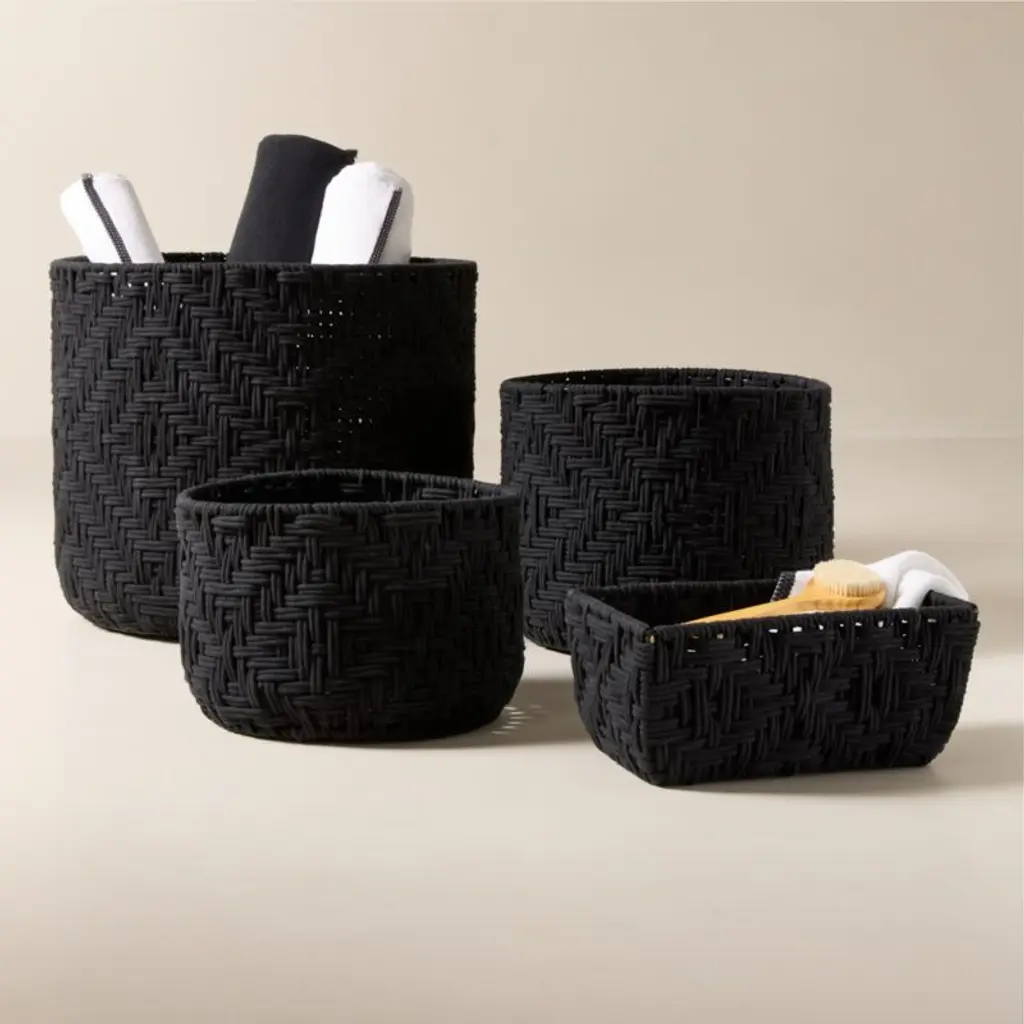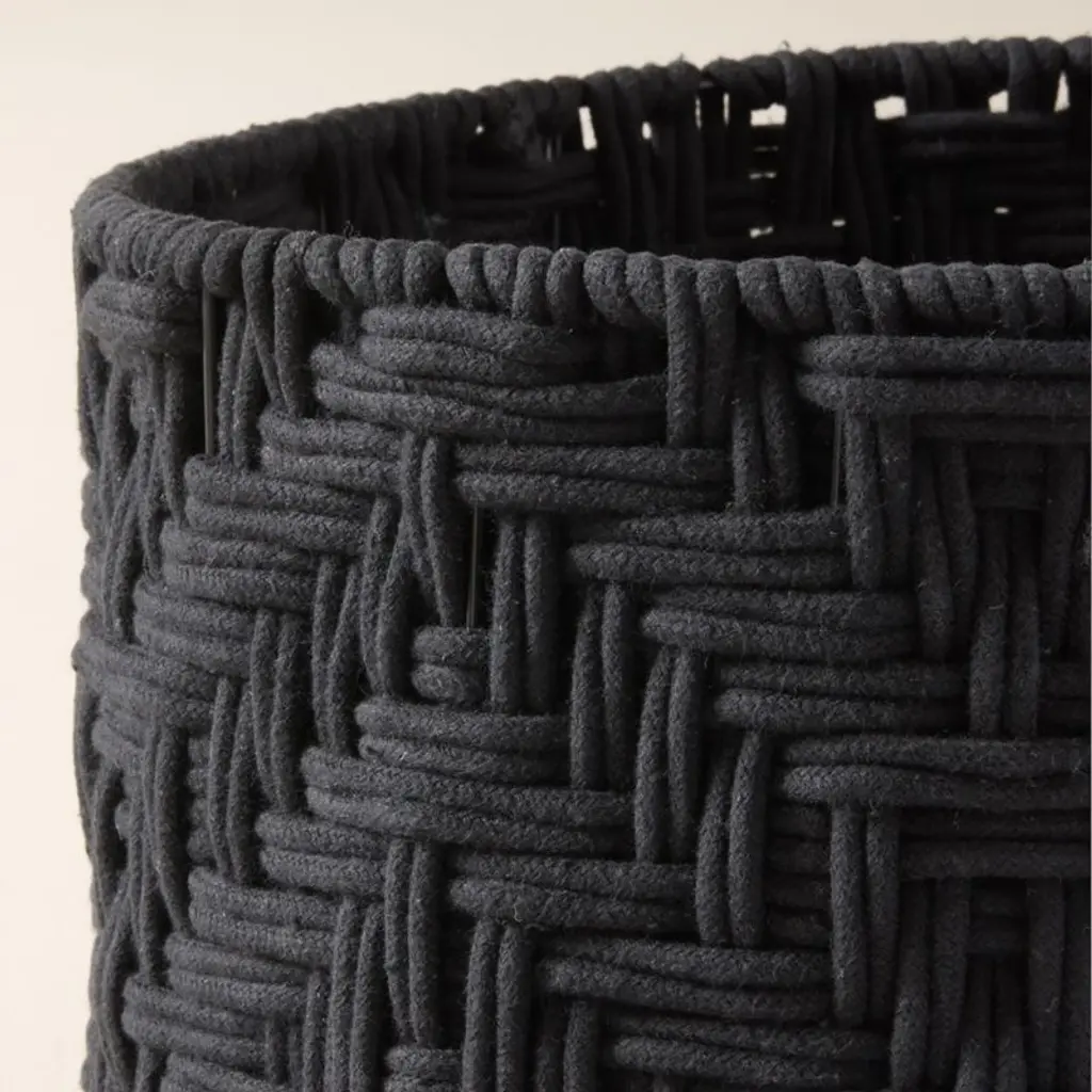 Rowen Handwoven Round Black Cotton Storage Basket Medium