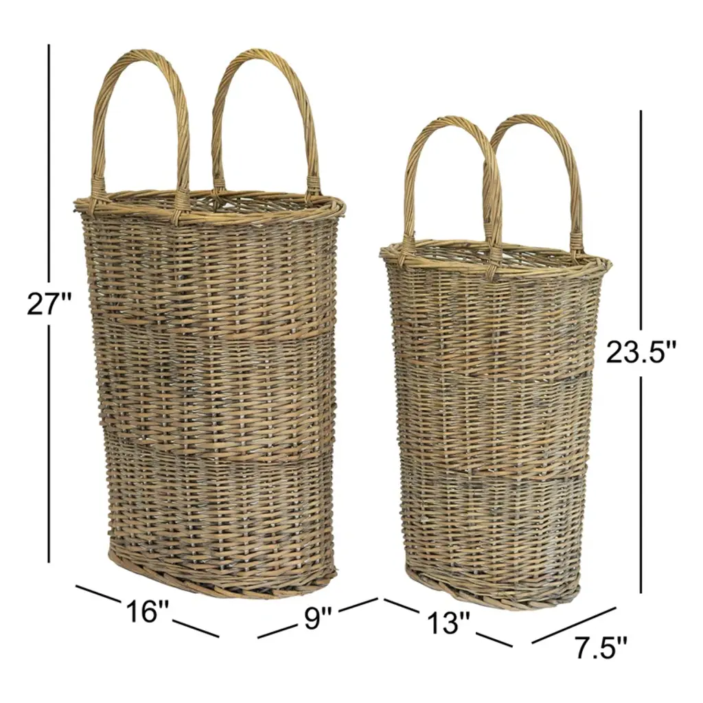 This set of two tall oval wicker baskets is so versatile! Can be used as accent pieces or are perfect for your storage needs.