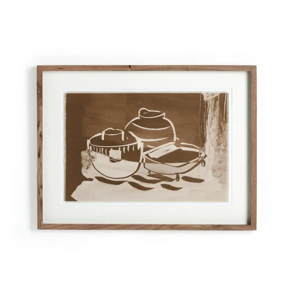 Sara Fitz's delightfully detailed depiction of a wicker basket will add charm to a bedroom, a family room, a kitchen, or anywhere else you place it. The giclée print is floated on a white mat within a wood frame and arrives ready to hang.
