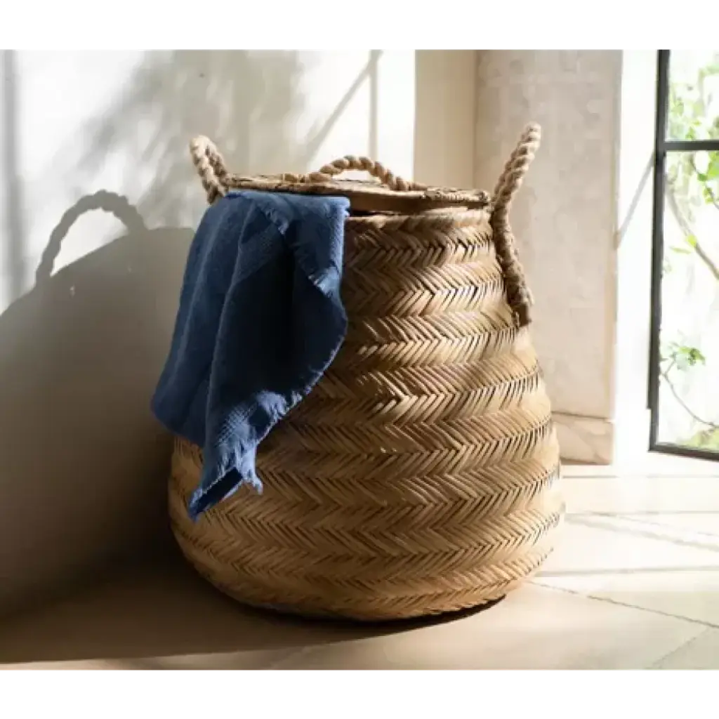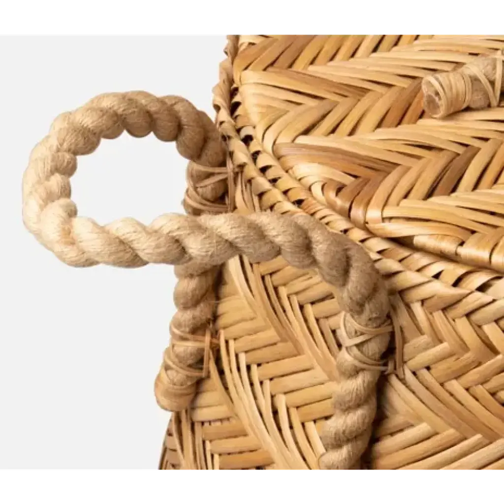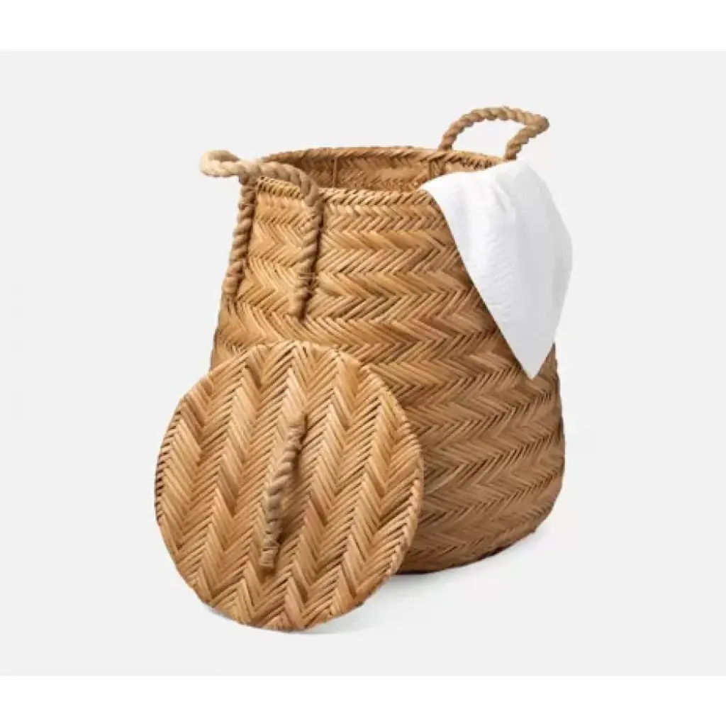 Oversized rattan hamper with chevron weave and nautical-inspired jute rope handles. Detachable lid. The designers at Pigeon & Poodle believe the details of a home are just as important as the furniture. A gorgeous toothbrush holder or handcrafted canister can elevate an entire bath, the perfect frame can heighten the feel of a whole space, and a good-looking storage basket can be your look’s missing link. With thoughtful design and top-notch craftsmanship, Pigeon & Poodle create home accessories with the care and attention typically reserved for larger pieces of décor.
