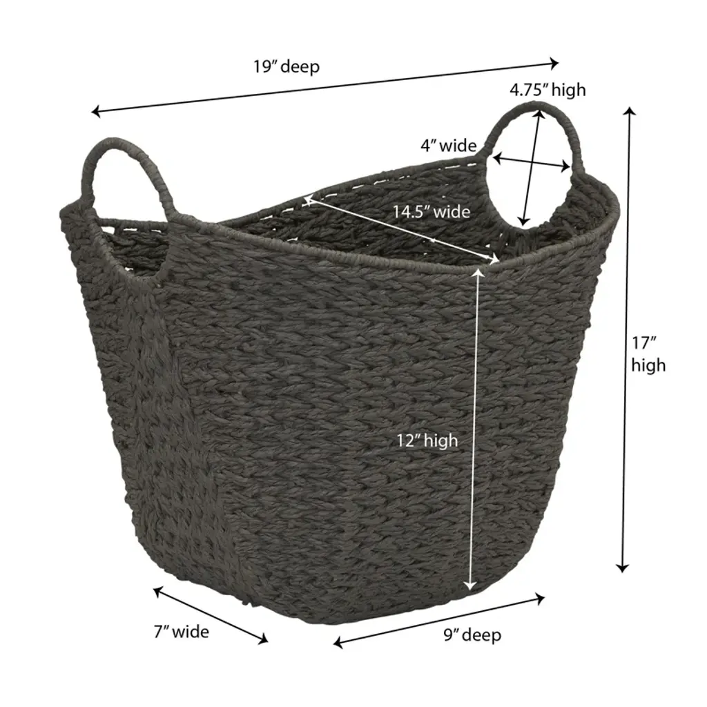This woven basket with handles is a stylish and smart storage solution for any living room, bedroom, bathroom, craft room, office, and more. This large woven basket is made of soft, hand-braided paper wicker over a sturdy metal frame, so the basket stands securely and keeps its shape. The basket has a tapered shape with a wide opening and sides that dip low for a modern look and easy access to the basket’s contents. The basket has two circular handles on either side. Each handle is wrapped around the wire for extra stability. Despite its wire frame, the basket is still lightweight and easy to tote from room to room. The basket’s natural, earthy tone and materials are on trend, but still a classic, neutral piece that fits into almost any home’s decor style. While the basket is ideal for indoor use, its weather-resistant natural fibers are suited to limited outdoor use as well, especially in porches, decks, and other areas where it might have limited direct exposure to the elements. The natural paper rope fibers have been coated to help protect their longevity, which helps add a slight bit of weatherproofing as well. Please note: Color and texture may vary from photos because each piece is handwoven from natural fibers.