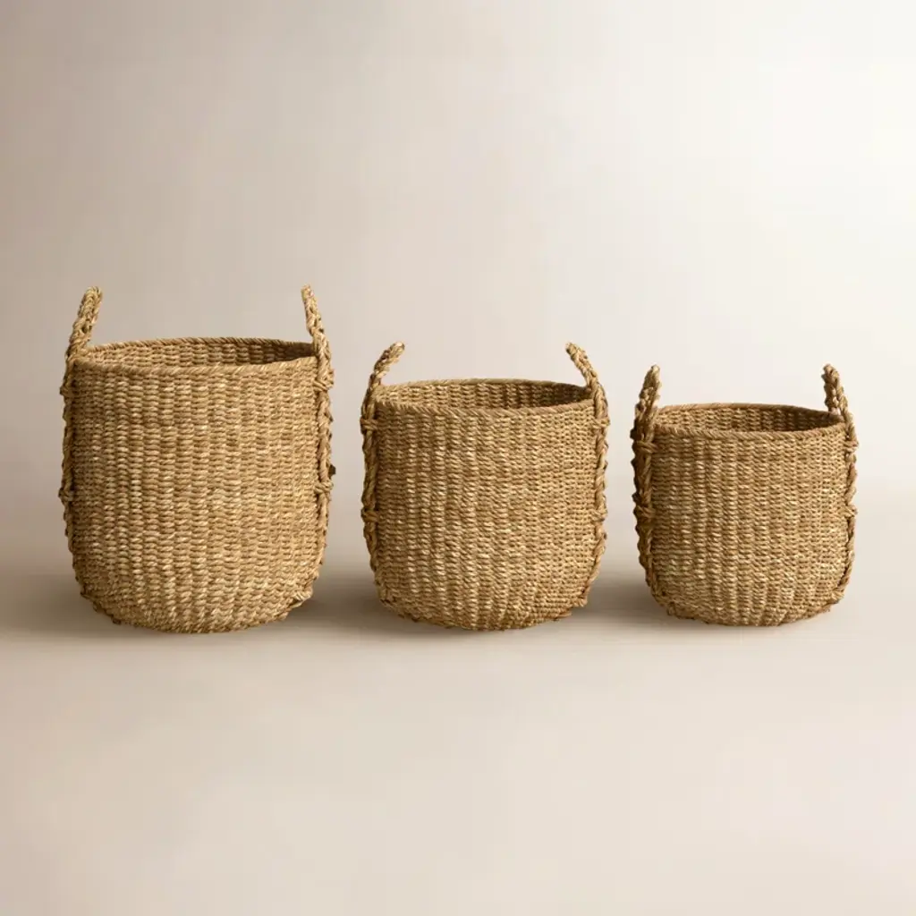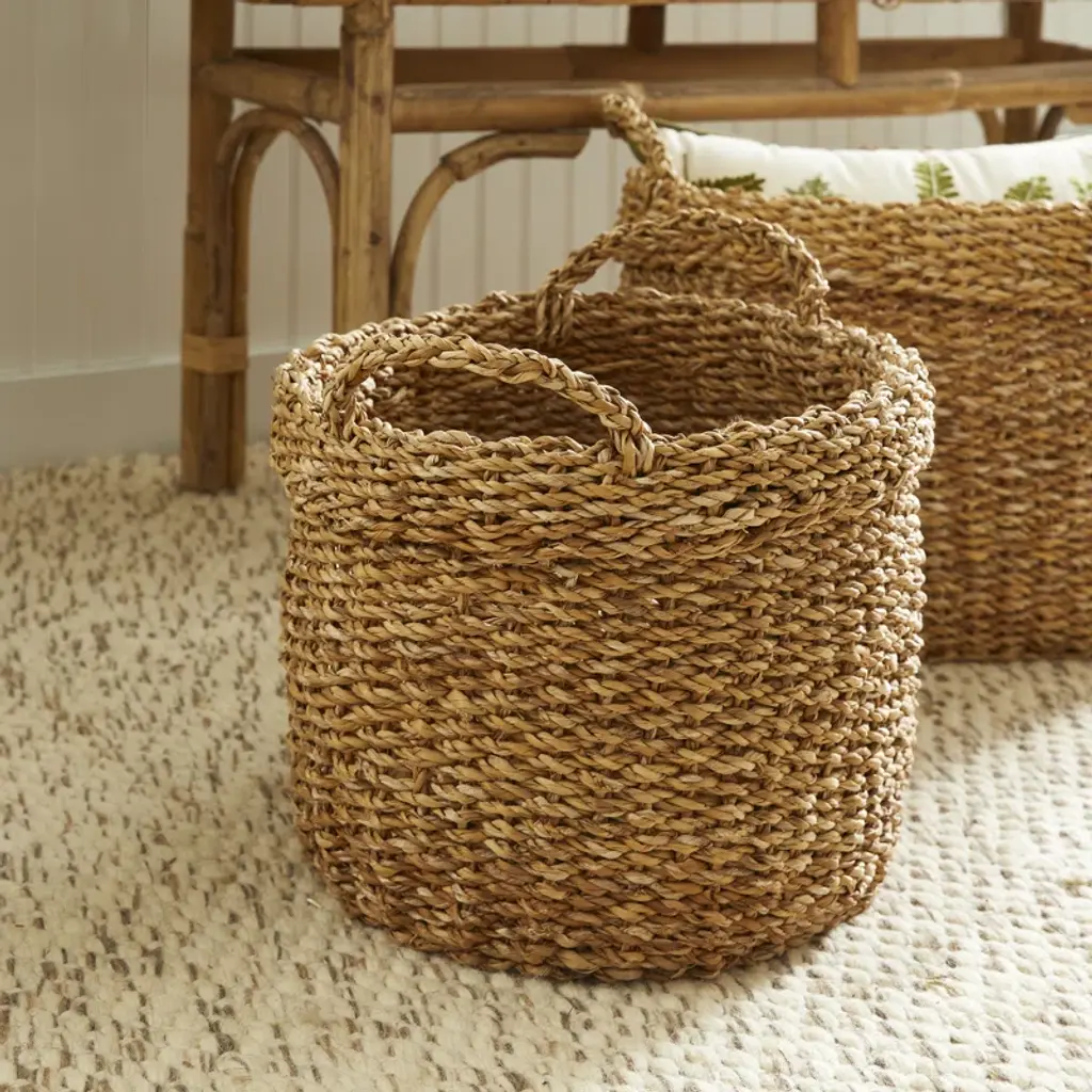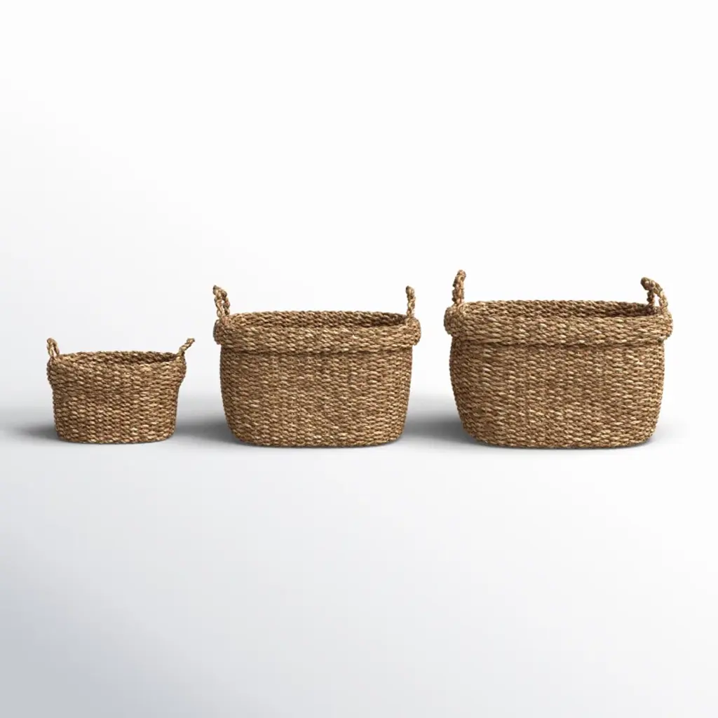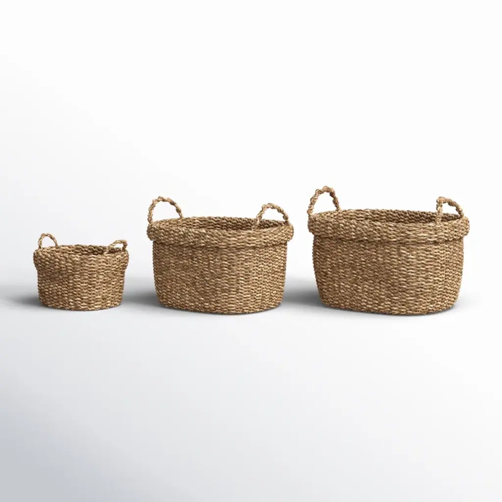 Seagrass 3 Piece Oval Basket With Cuff Set
