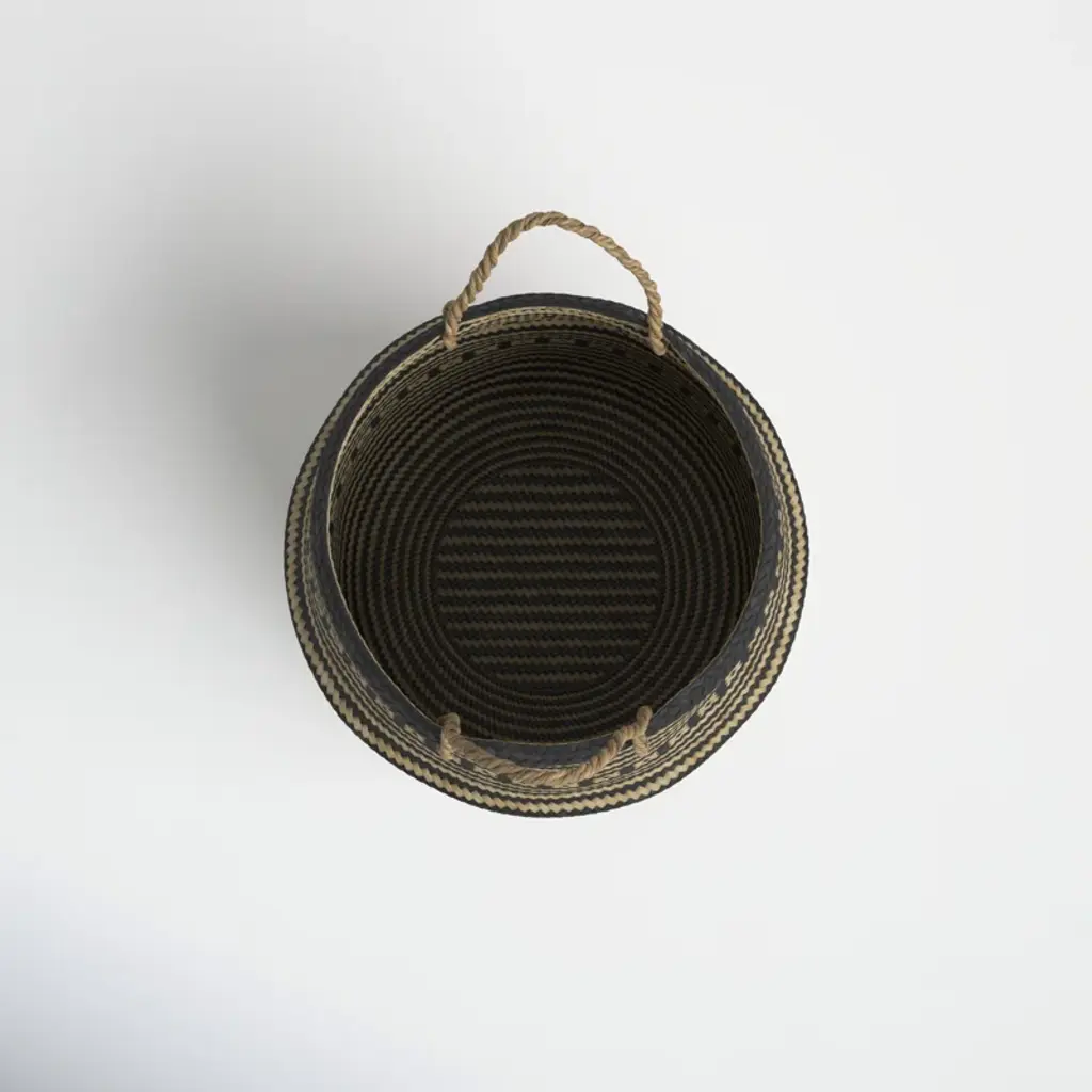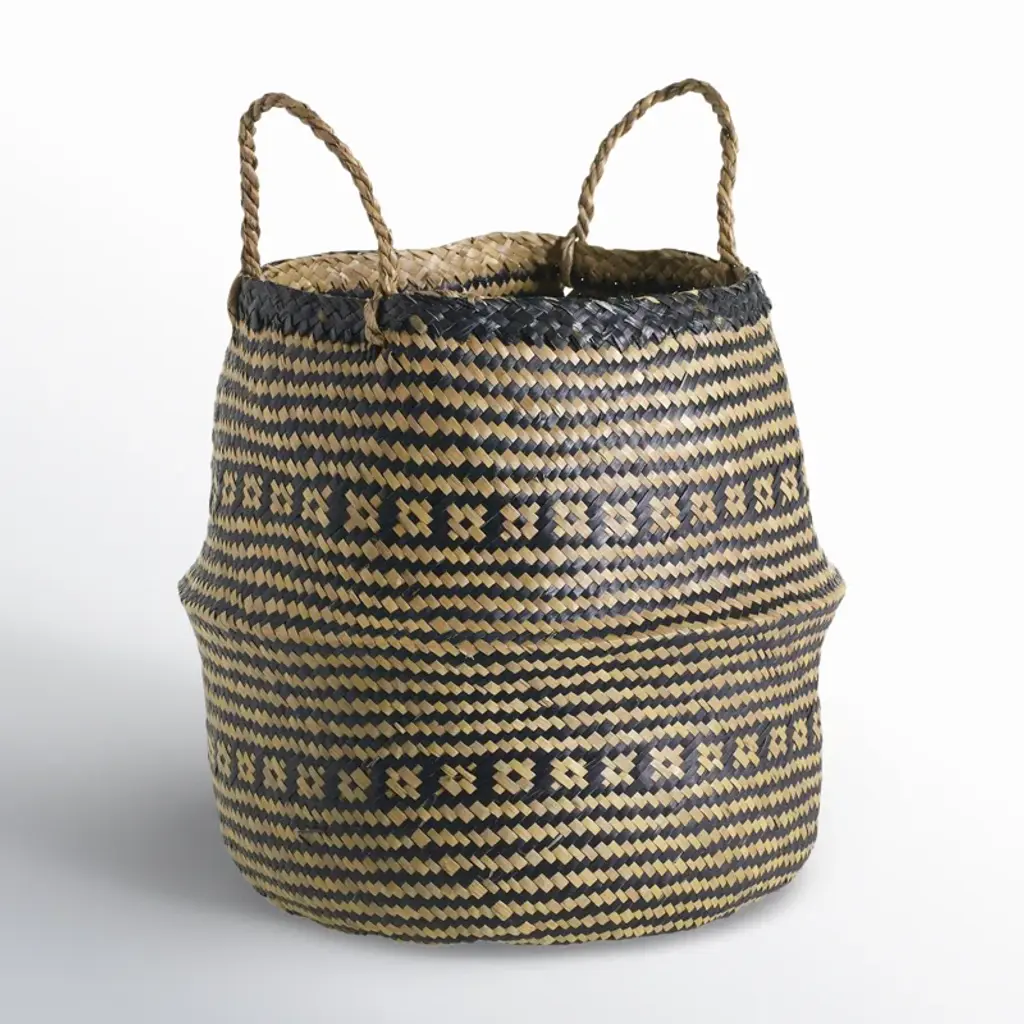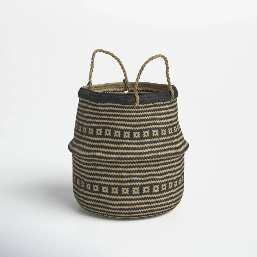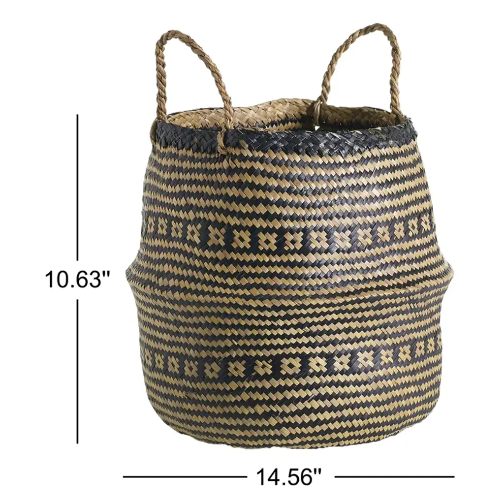 Baskets are a great affordable option to add some detail and texture to your home. The basket is made out of seagrass with black seagrass woven in it. We recommend getting a plastic saucer to add to the bottom of the basket under your plants nursery pot.