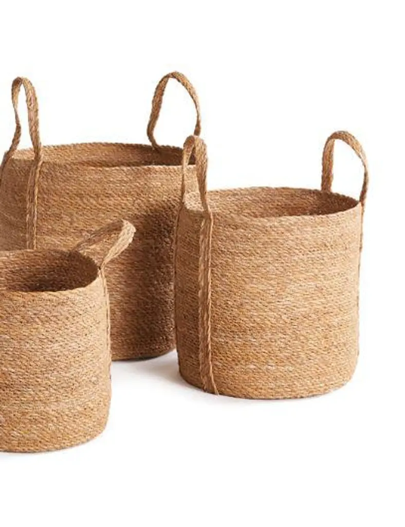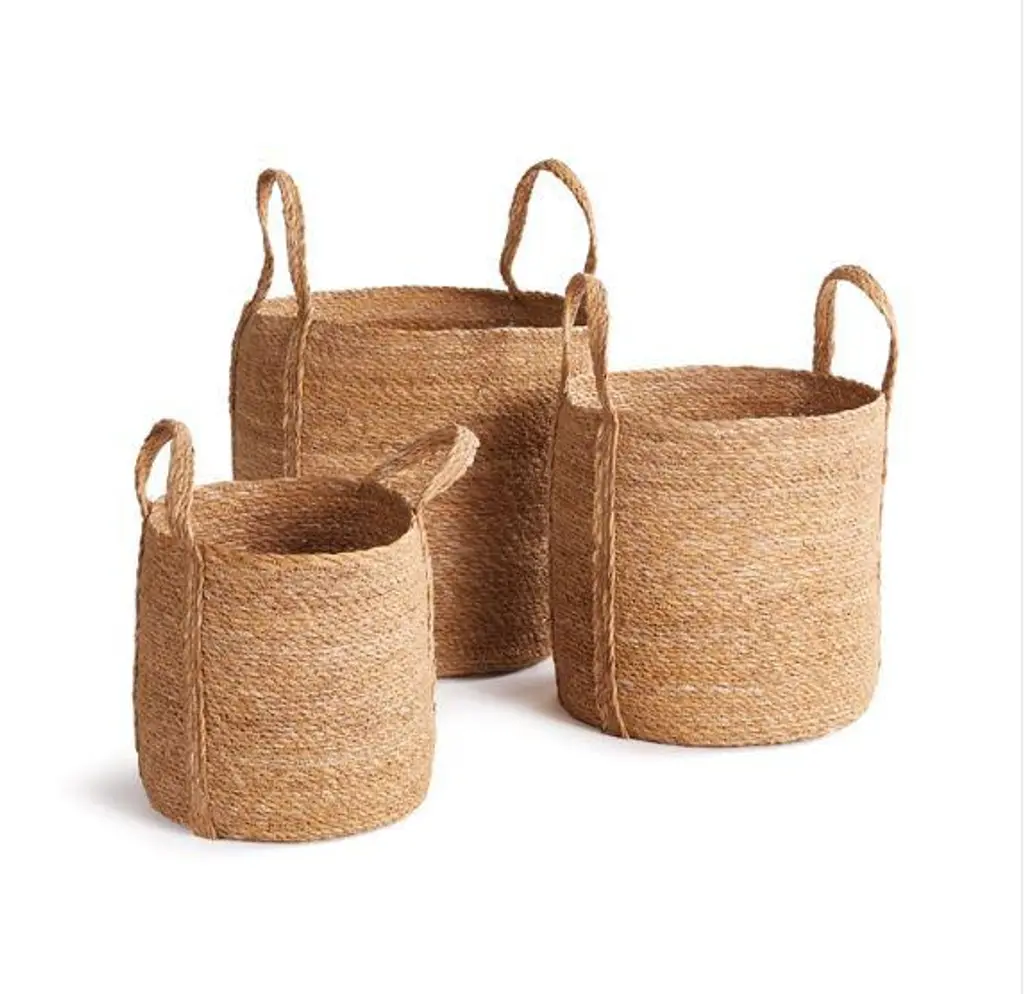 Seagrass Round Baskets With Long Handles From Kenneth Ludwig Chicago - Set Of 3