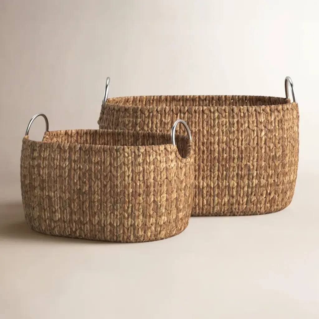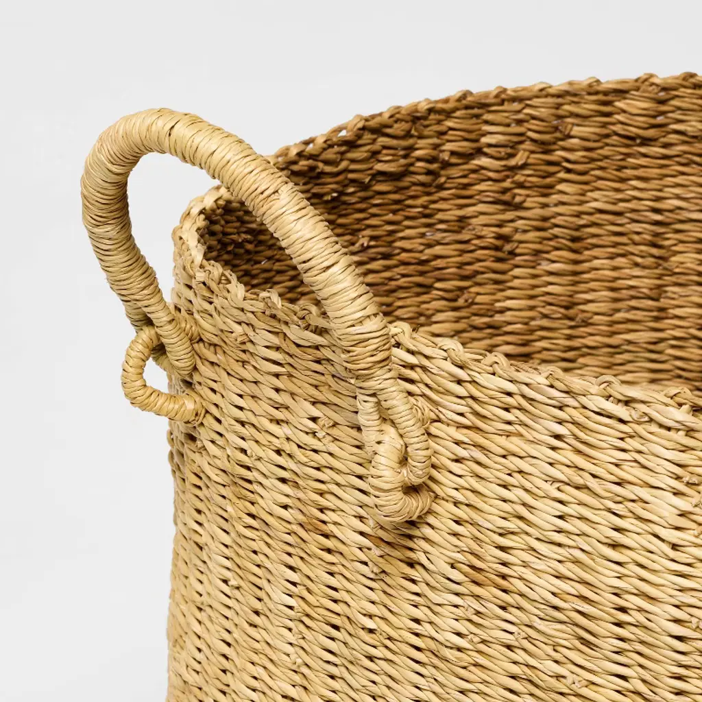 Add vintage flair to your home decor with the Set of 2 Woven Baskets from Threshold™ designed with Studio McGee. These two baskets come in varying sizes to give you enough space for your blankets, throws, toys and more. Made of grass, this woven basket set comes with double handles for easy lifting and movement.Threshold™ designed with Studio McGee: Looks like home, feels like you.