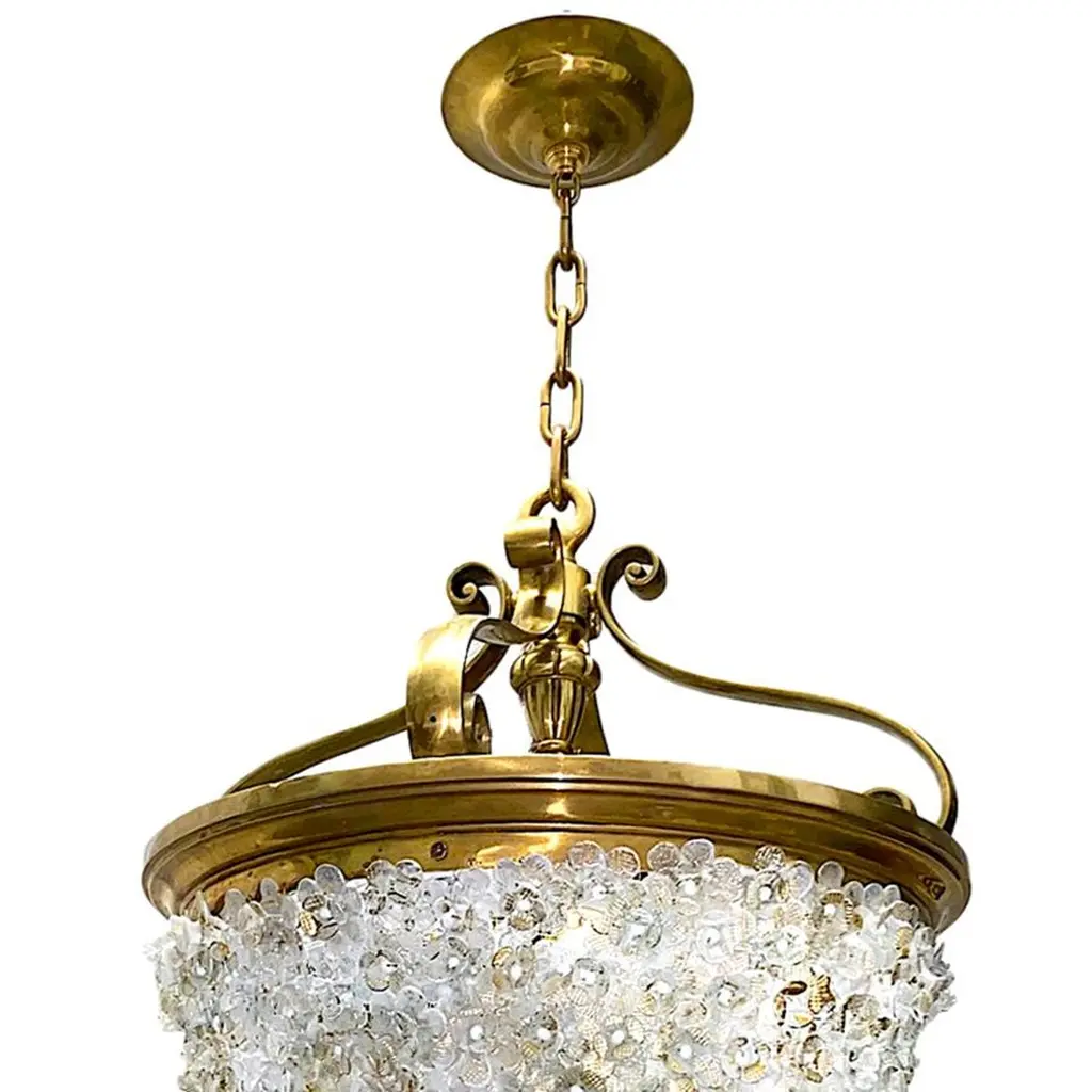 Set of 3 circa 1940's gilt bronze lanterns with white and gold dust flowers on body. 4 interior lights.Sold Individually.Measurements:Min. Drop: 29"Diameter: 20"