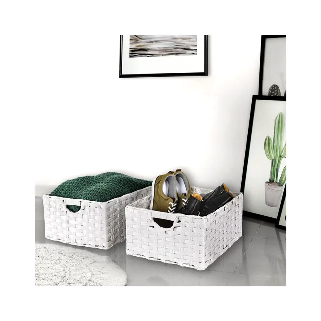 Seville Classics Handwoven Storage Basket Set(2-pack), White