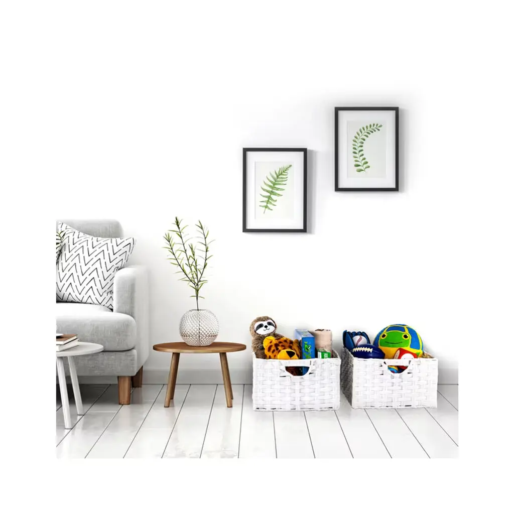 Seville Classics Handwoven Basket Set (2-Pack) is a stylish and practical way to store household essentials. The lightweight set includes two rectangle baskets made from handwoven synthetic strands wrapped around a study steel frame. Uniquely handwoven by local artisans, so there may be slight variations in size and imperfections. The 2-pack basket set keeps items out of sight, making it ideal for household essentials, while adding style and storage versatility to any room and blending seamlessly with different decor styles. The baskets feature two cut-out handles for easy carrying. No assembly required, simply unfold, and set. Design Patent Pending.