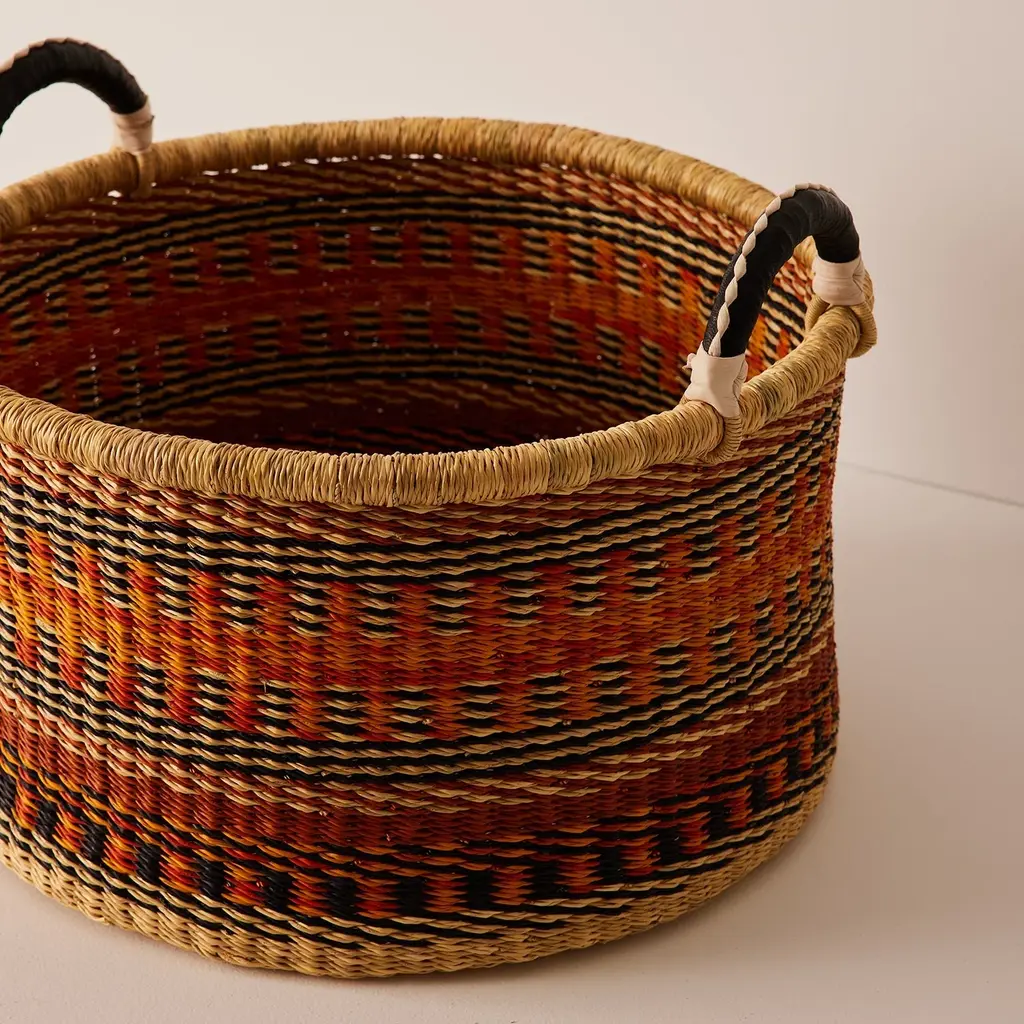 From towels to couch throws, and entryway accessories such as umbrellas, gloves, and tote bags, this medium-sized Baba Tree basket will always come in handy to keep your space clutter-free— and its versatility makes it an attractive pick for any room in your home. Expertly woven by hand in Ghana using sturdy elephant grass, it is light and easy to transport thanks to convenient handles. Consider purchasing a few in different sizes to use around the home.Every Baba Tree piece is crafted under ethical working conditions and provides a meaningful income for its maker.