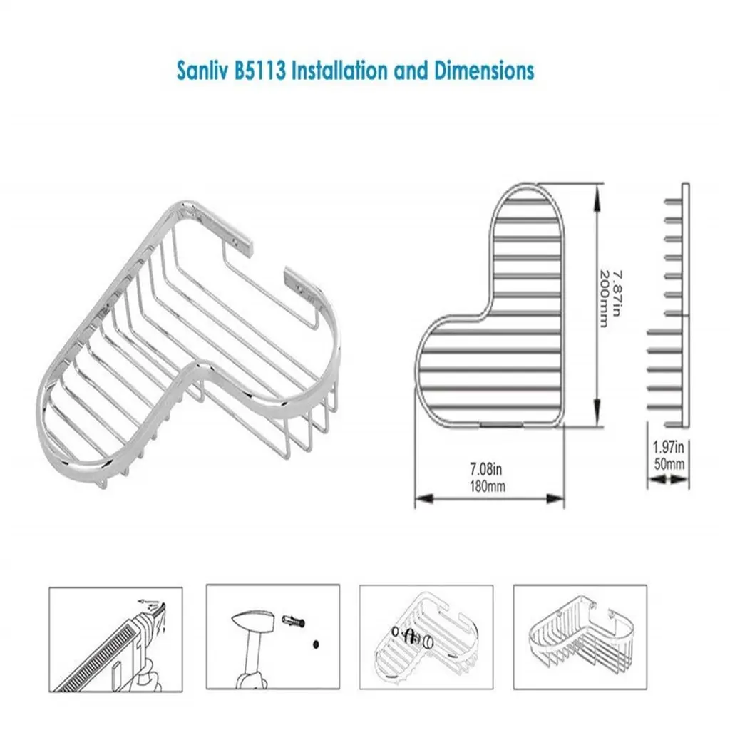 Unique design corner shower soap basket is a great shampoo holder for inside shower wall storage. Sanliv heart shaped corner shower basket is a must-have bathroom organizer inside shower/bathtub. Premium solid brass wires are soldered into the frame for strength and durability. Hotel style corner shower basket shelf is well made in polished chrome finish, rust resistant, a lifetime fitting. Bathroom space organizer for 90° corner, this shower or bathtub soap basket is ideal for storing your shampoo, body wash, cream and more, can be removed to where you need. Easy to Install: Sanliv corner shower soap holder comes with screw caps, hardware pack. Fits home, bathroom, kitchen, public toilet, school, hotel and so on. Perfect shower basket dimensions: 205MM long x 185MM wide x 60MM high / 8 in x 7.3 in x 2.4 in.