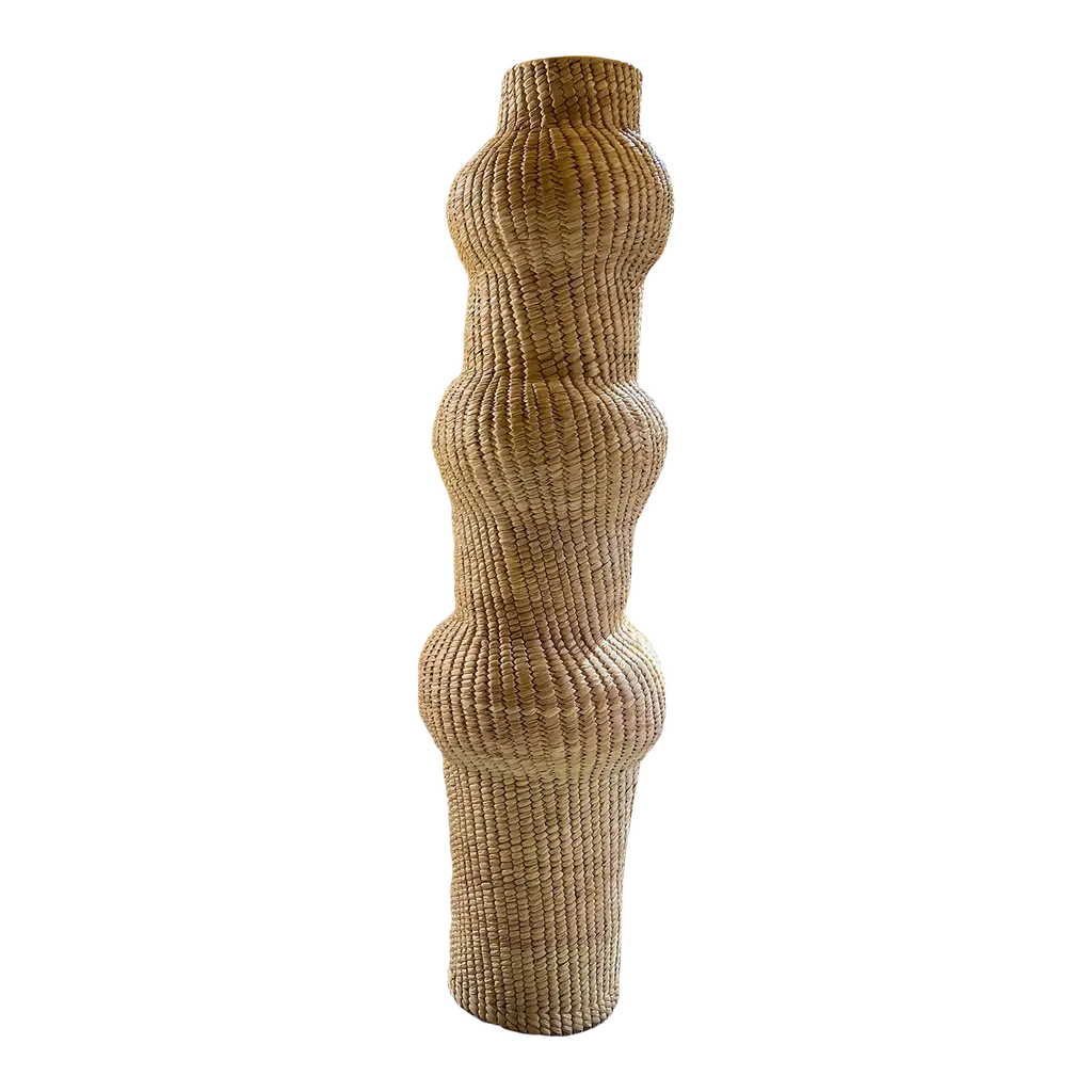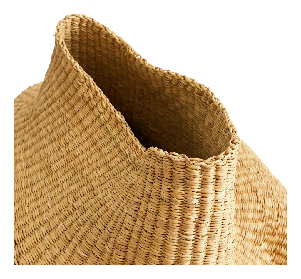 We just can’t get enough of our uniquely sculptural Sika Basket. Traditionally known as a yoomelingah-yure or bent pot, this gorgeous vessel comes to us from the Bolgatanga region of northeastern Ghana, where it was handwoven by skilled local craftswomen dried vetiver grass harvested from nearby riverbanks. We were instantly charmed by Sika’s rounded curves, twisting, wave-like shape and slouchy relaxed feel. Along with this stunning form, it’s also incredibly functional — great for stowing away clutter in any room of the house or filled with a display of earthy branches or dried botanicals. Right at home in any organic-chic space, Sika is sure to add a pop of natural texture and global-chic style wherever it goes. True handmade treasures, each one is slightly unique in shape and size. •approximately 17.25" diameter x 16"H•opening: approximately 8.5" diameter •dried vetiver grass •handwoven in the bolgatanga region of ghana•fair trade •each is unique; variations in shape, size and natural character should be expected