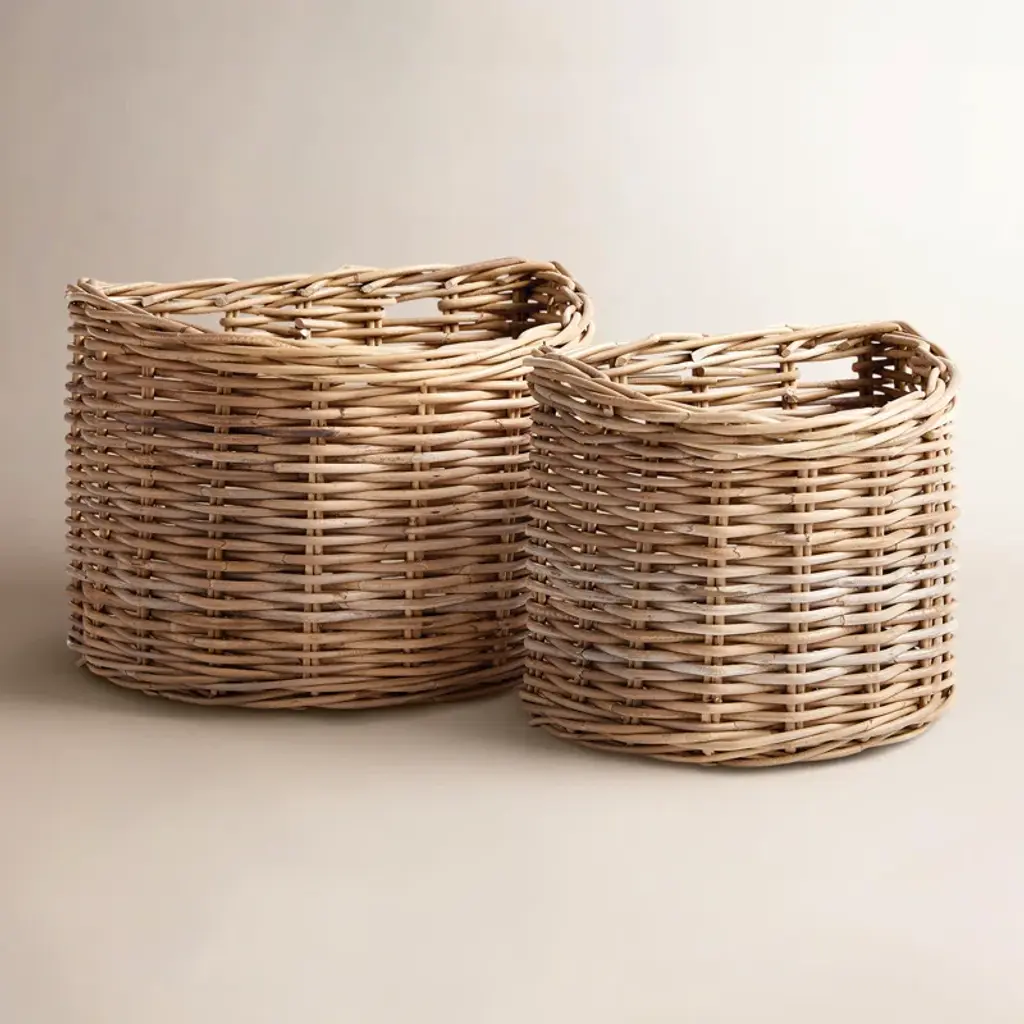 Silvia Coastal Beach Natural Woven Rattan Hamper - Set Of 2