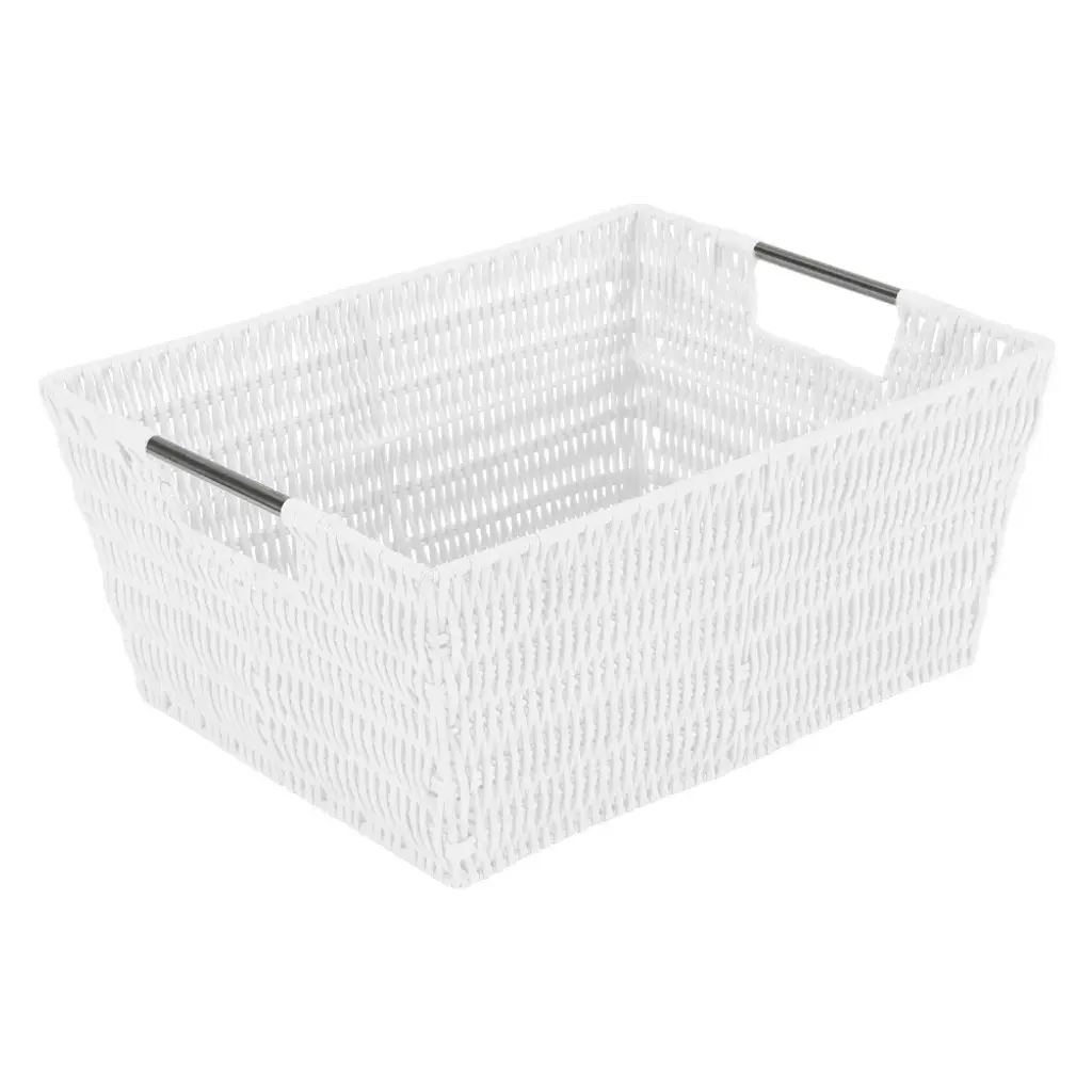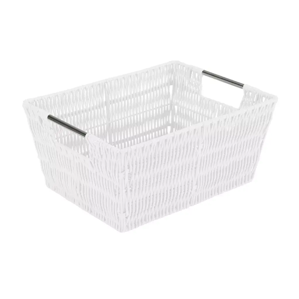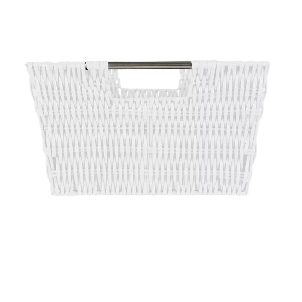 Organize and create storage in your home with the Simplify Rattan Tote Basket Collection. Simplify's Rattan Tote is a PE Basket with an iron frame and 2 sturdy stainless steel carry handles. It is strong and durable prolonging it's life, and it's lightweight design makes it easy to lift and carry. Fits any home decor with it's wide selection of colors. Store your household belongings and organize space with these stylish baskets. stack them together in a corner of your craft area, home office or dorm to keep your essentials close at hand in an organized manner.