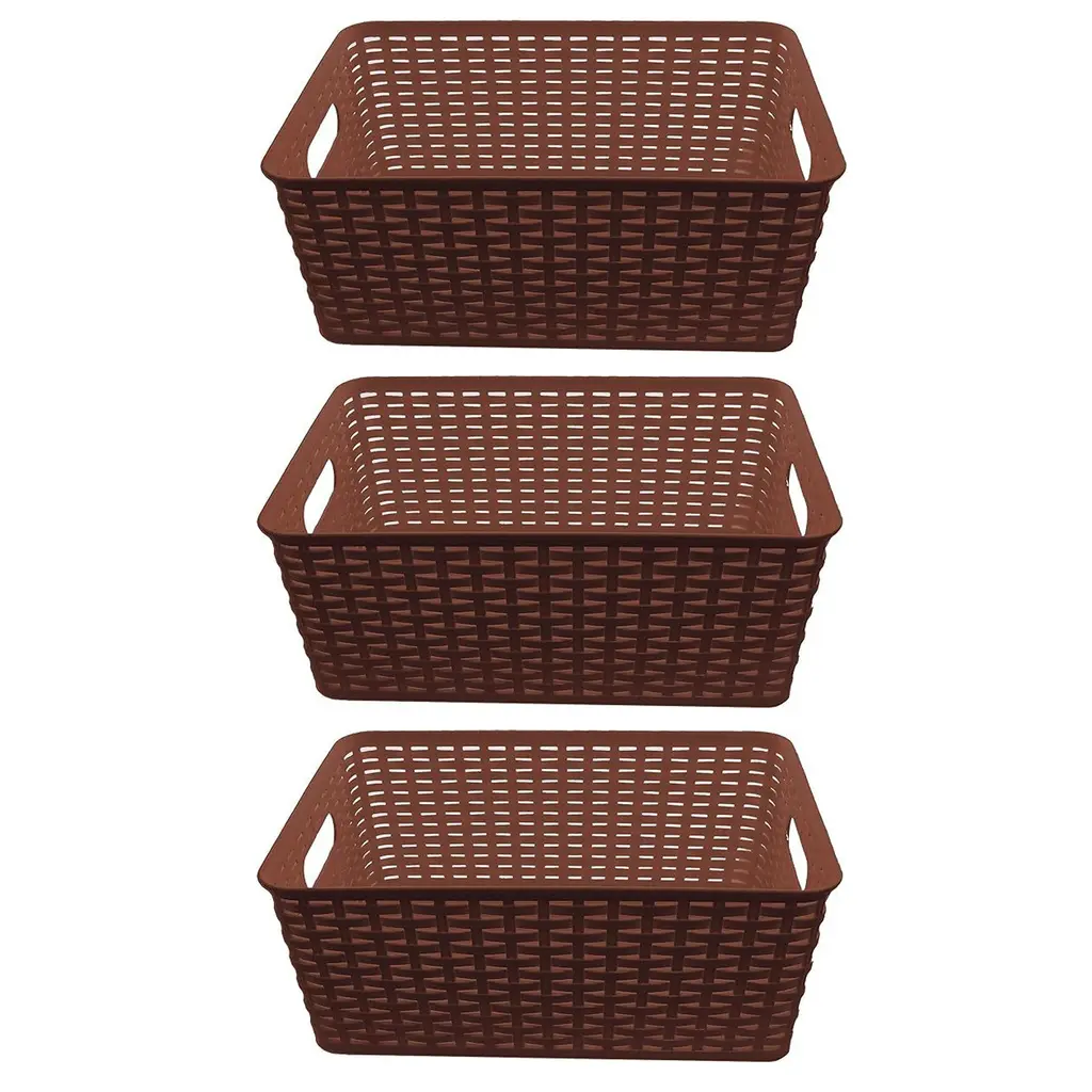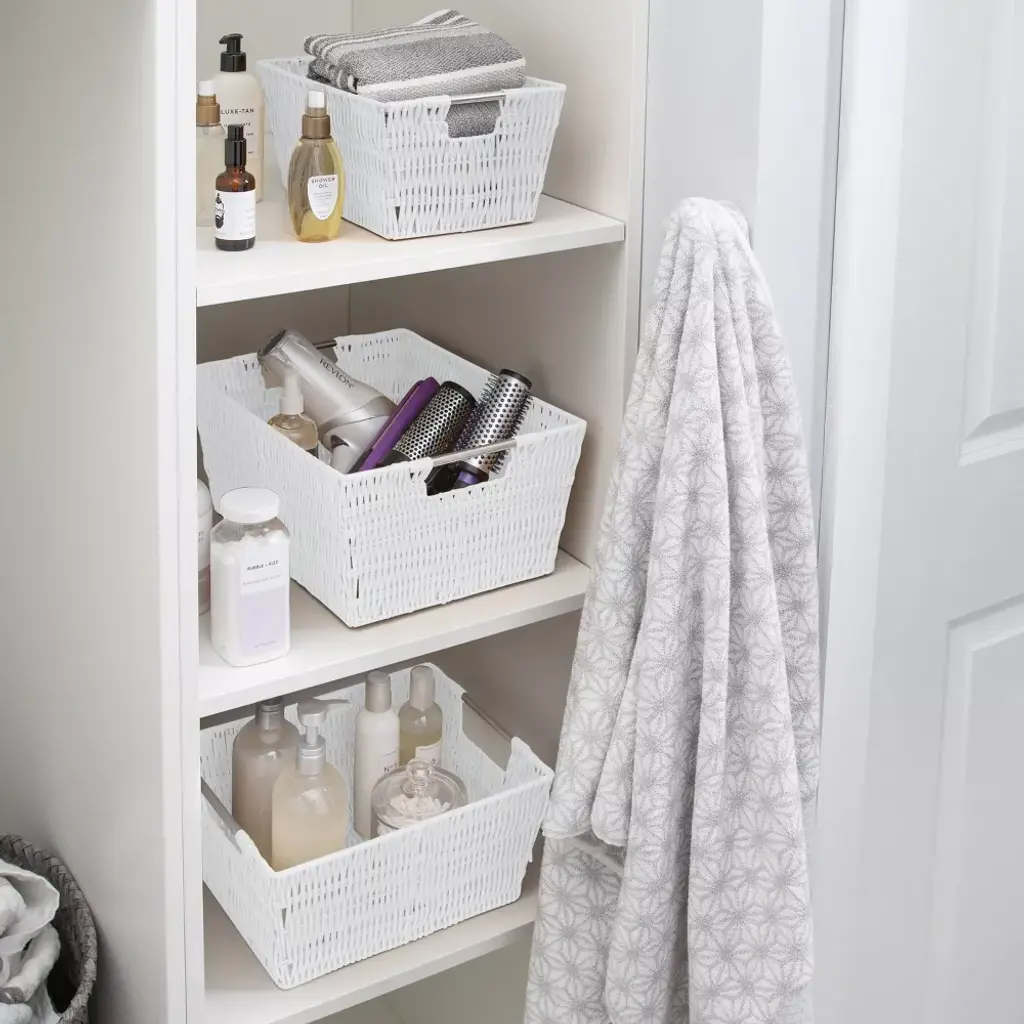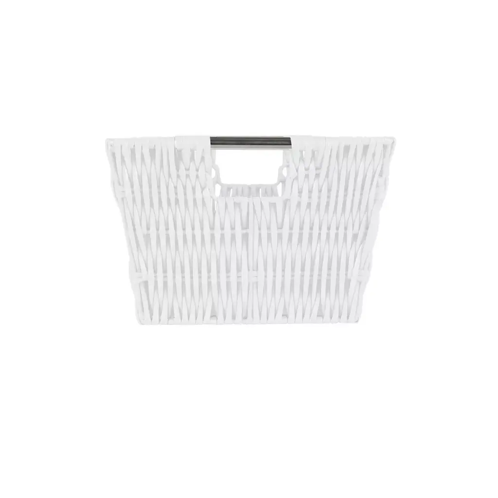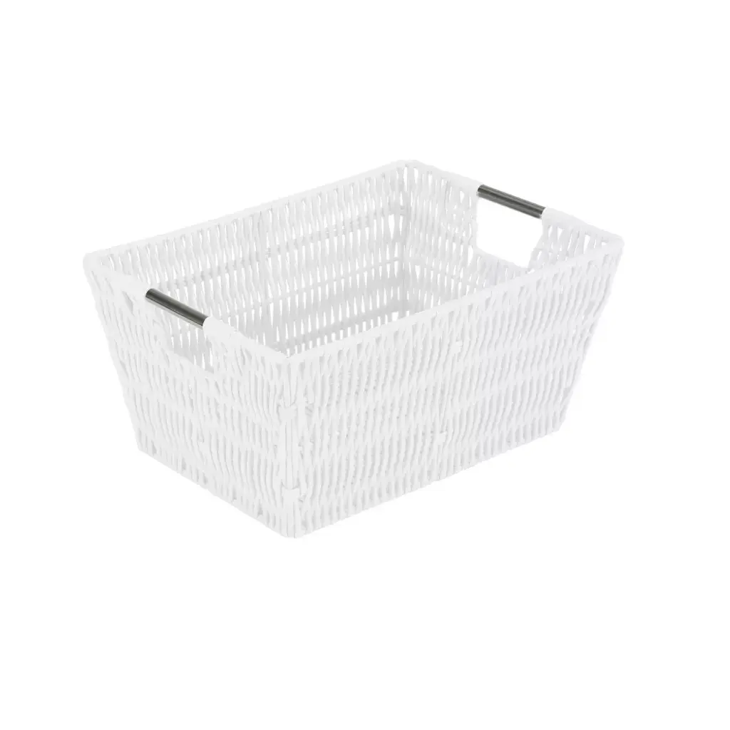 Organize and create storage in your home with the Simplify Rattan Tote Basket Collection. Simplify's Rattan Tote is a PE Basket with an iron frame and 2 sturdy stainless steel carry handles. It is strong and durable prolonging it's life, and it's lightweight design makes it easy to lift and carry. Fits any home decor with it's wide selection of colors. Store your household belongings and organize space with these stylish baskets. stack them together in a corner of your craft area, home office or dorm to keep your essentials close at hand in an organized manner.