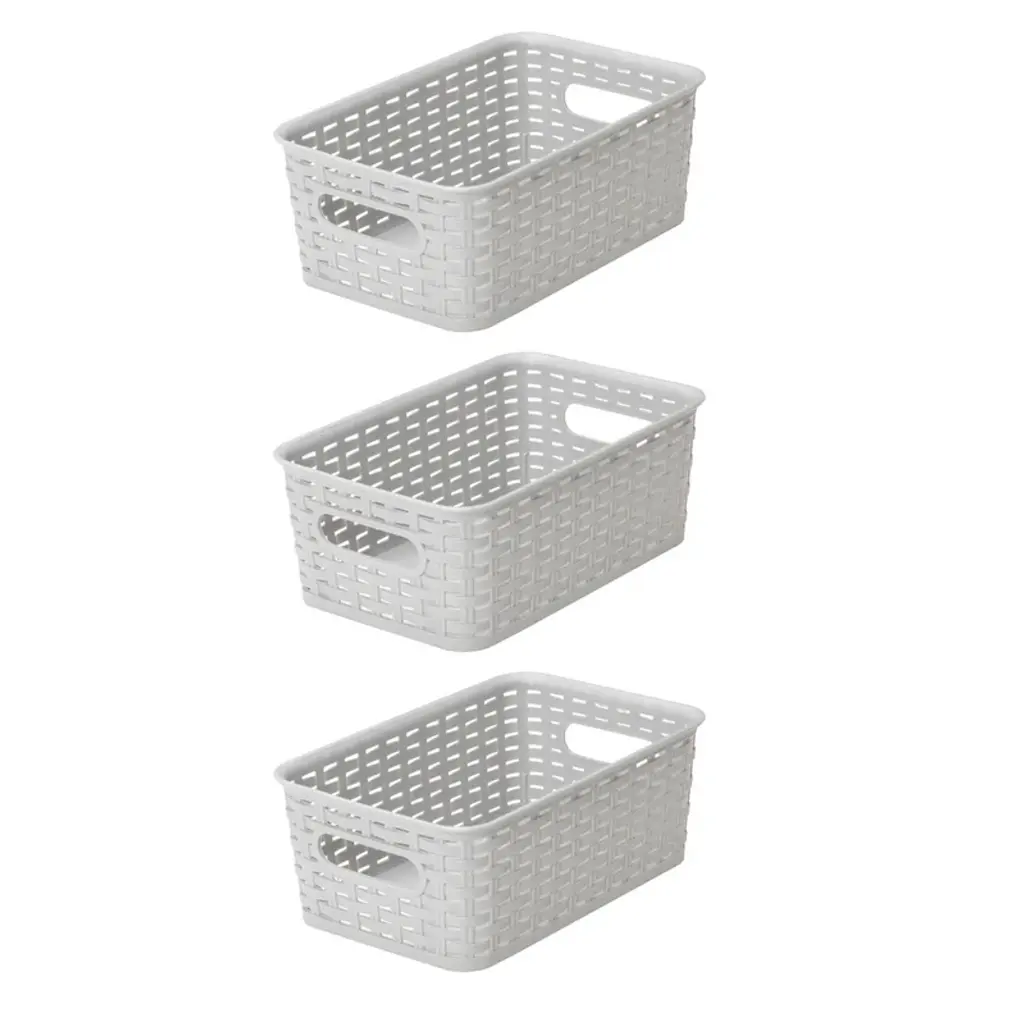 Simplify 3Pc Rattan Tote Set With Sterling Silver Handles White: Decorative Storage Bins, No Assembly Required